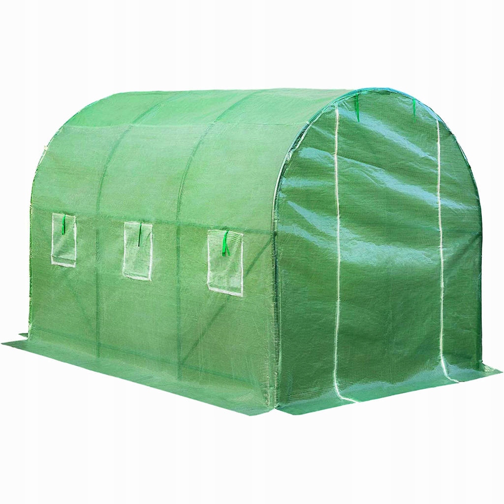 ЗЕЛЕНА ПЕ ФОЛЬГА з УФ-ФІЛЬТРОМ: цей набір для садової теплиці включає повністю закрите покриття PE із захистом від води та ультрафіолетового випромінювання, яке підтримує високий рівень вологості для вирощування рослин, одночасно пропускаючи живильне сонячне світло через теплицю. Подовжені краї фольги призначені для глибокого закопування в ґрунт для забезпечення більшої стабільності та натягу фольги, дозволяючи дощовій воді стікати. Фольга додатково укріплена товстою поліпропіленовою сіткою.
