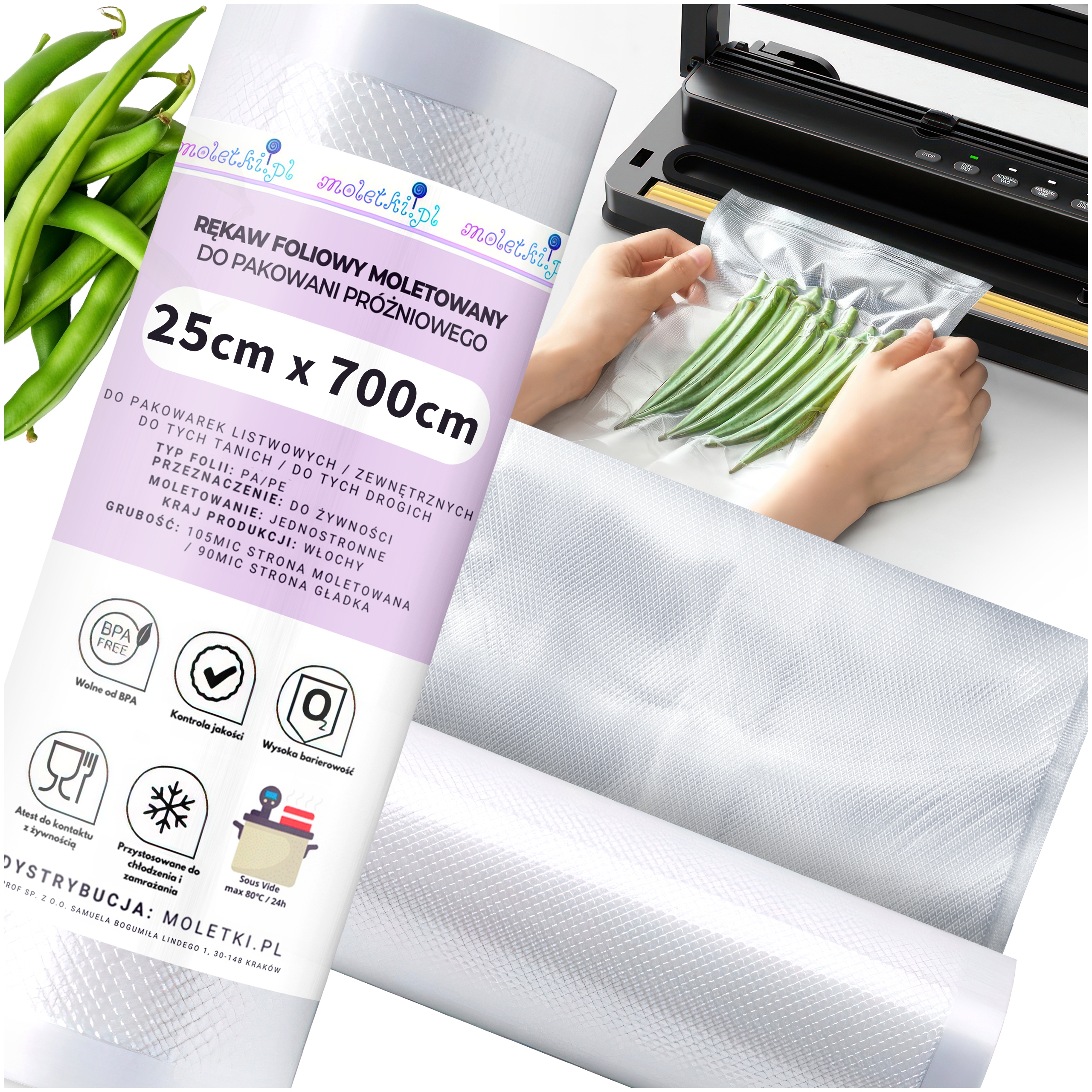 Наші рифлені фольги товщиною 105 мкм є одними з найміцніших пакетів для вакуумного пакування на ринку.