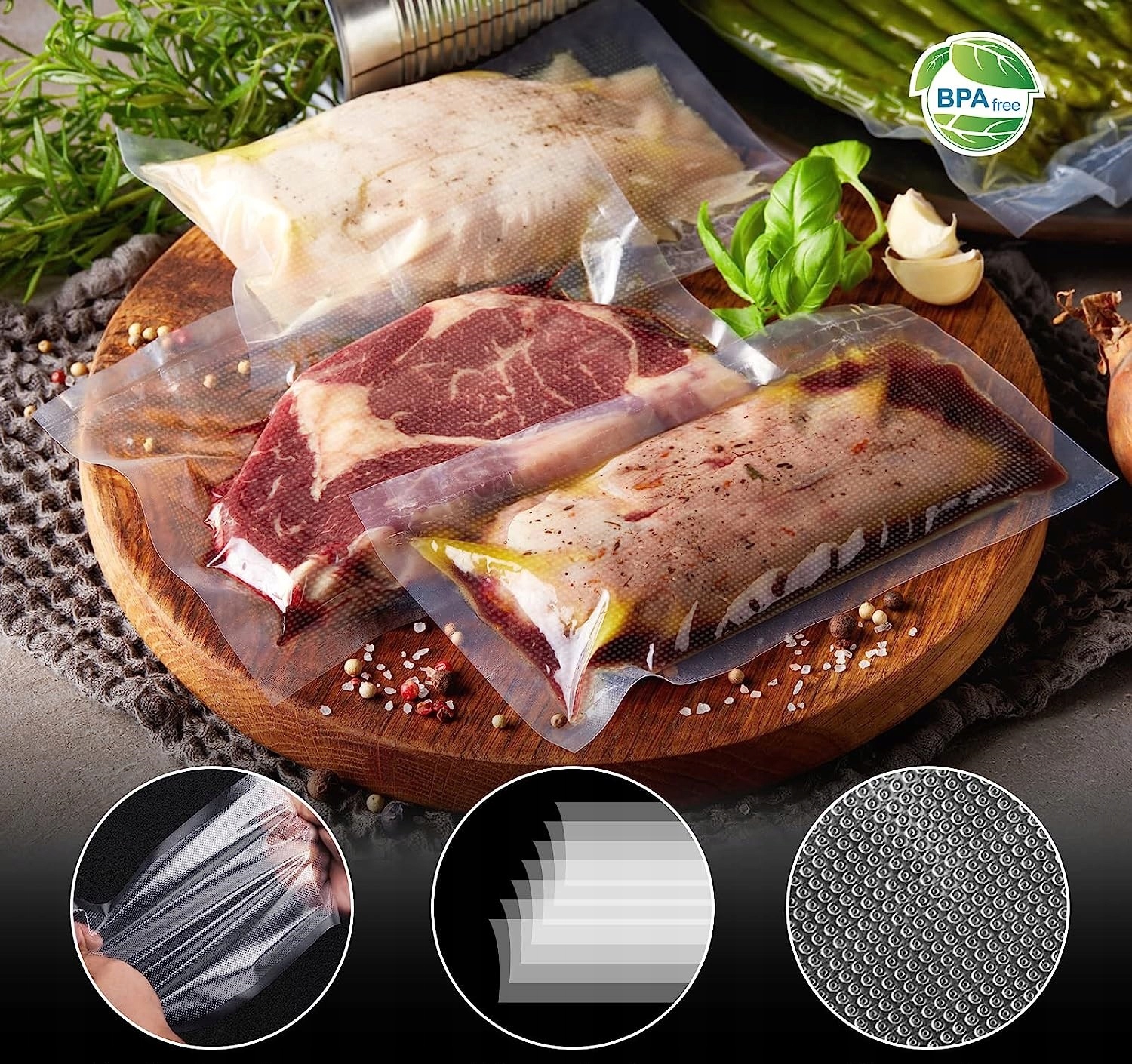 Він має глибокий малюнок тиснення, розроблений для зручнішого та швидшого видалення повітря. Правильно підібрана технологія виробництва, склад сировини та контрольований виробничий процес забезпечують міцні та щільні зварні шви та дуже хороший захист вмісту.