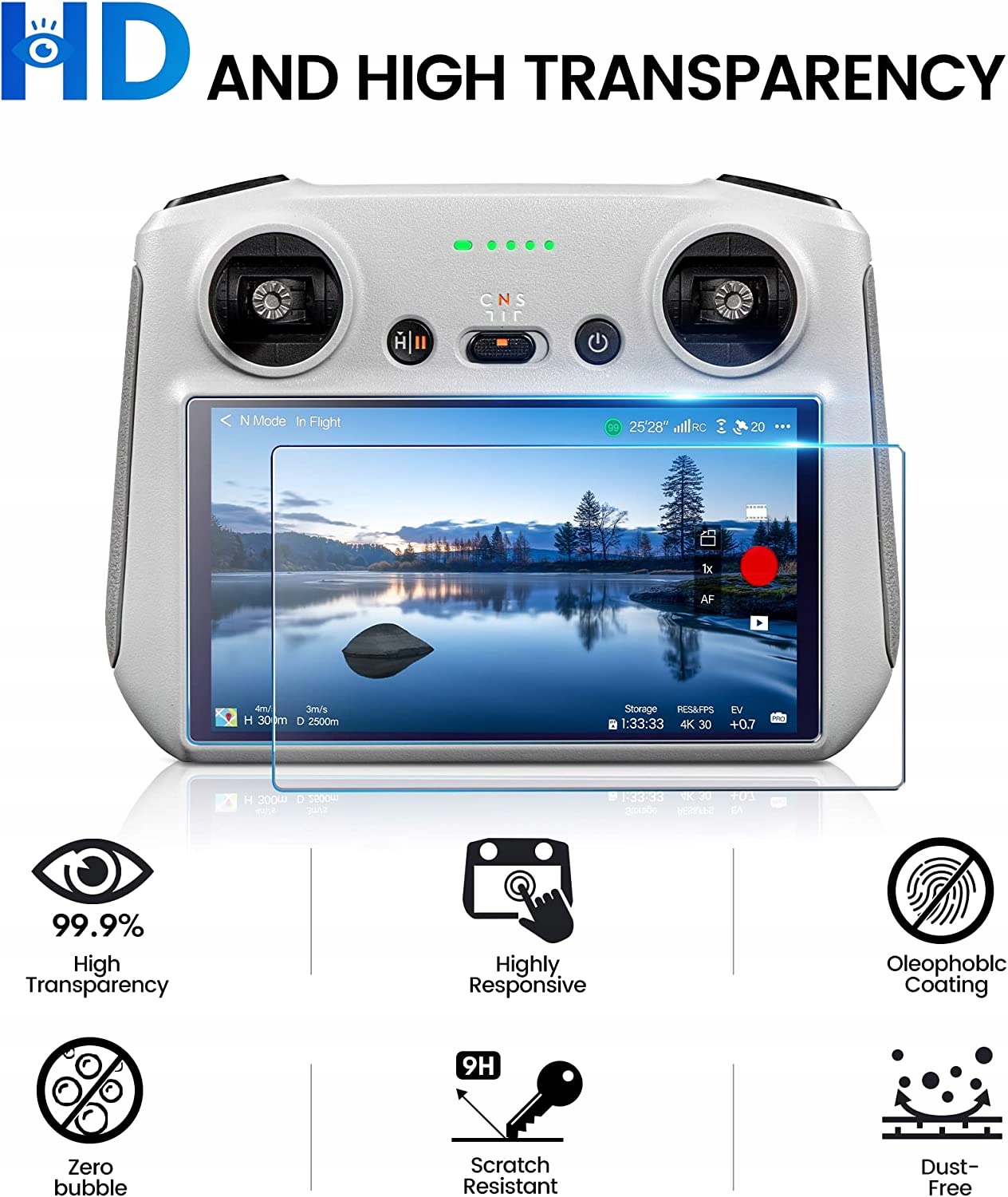 【Супертвердість 9H】Стійкий до подряпин, вибухозахищений екран, захищає екран пульта дистанційного керування DJI Mini 3 Pro RC