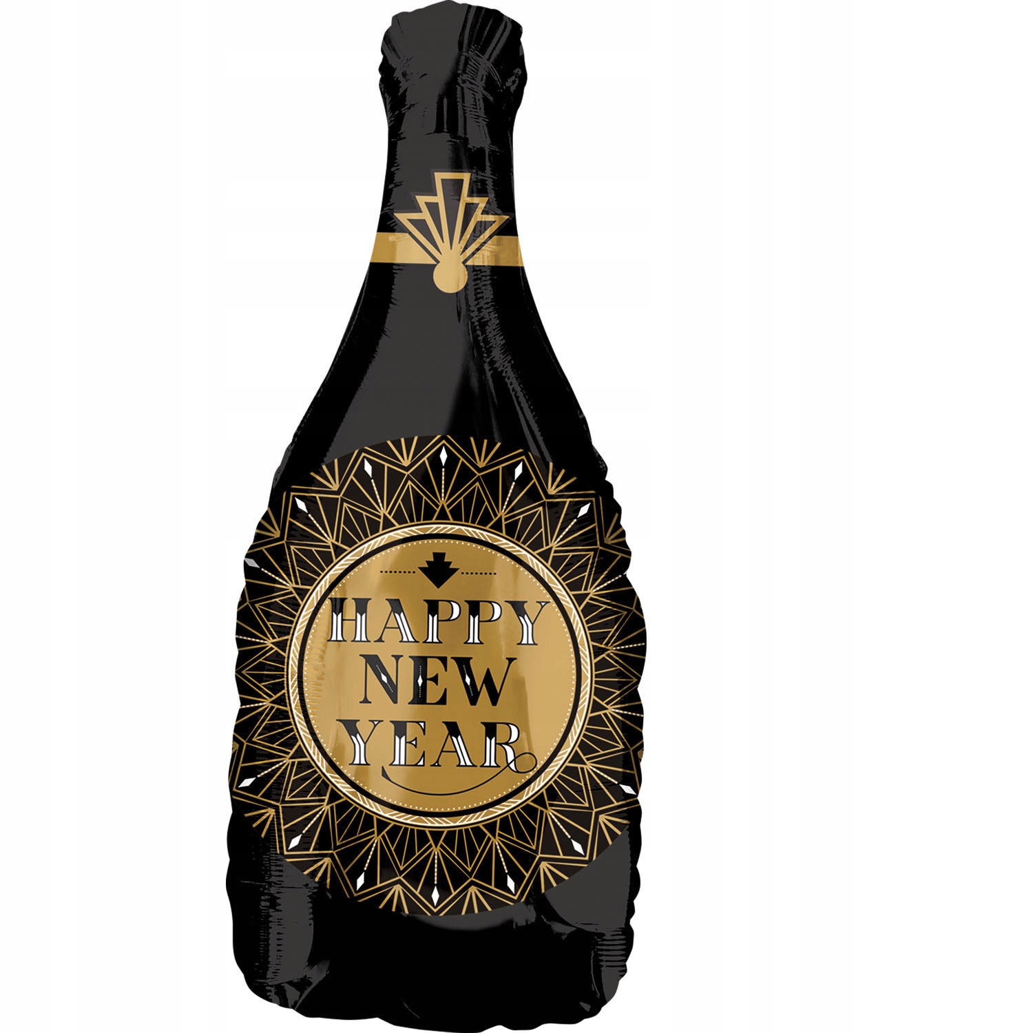 Фольгована пляшка з повітряними кульками чорна Новий рік 35см х 91см