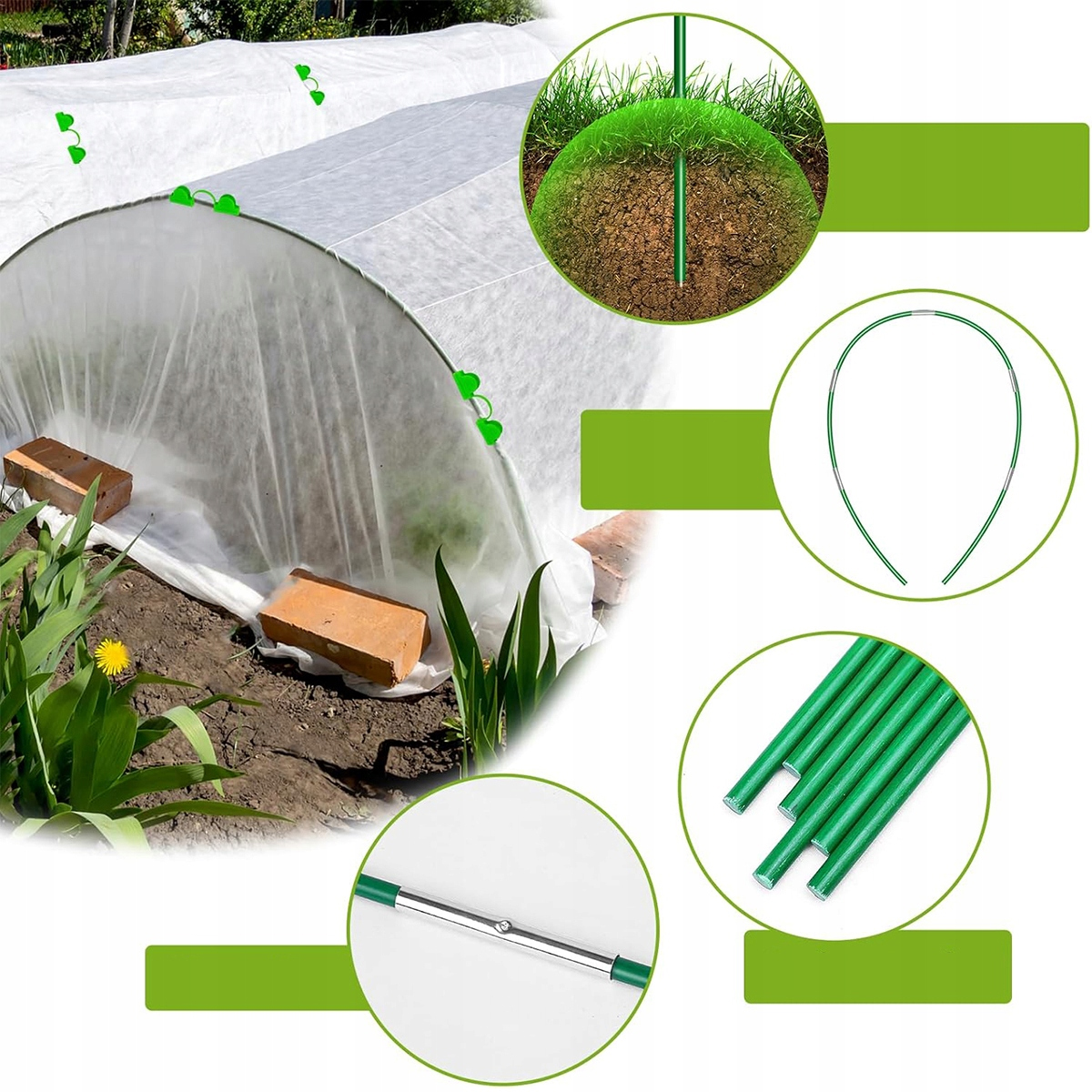 Набір можна використовувати із захисними сітками для рослин тощо (вони не входять до набору). Призначений для укриття рослин, захисту від заморозків і для будівництва теплиць - створює ідеальне середовище для швидкого проростання і росту рослин.
