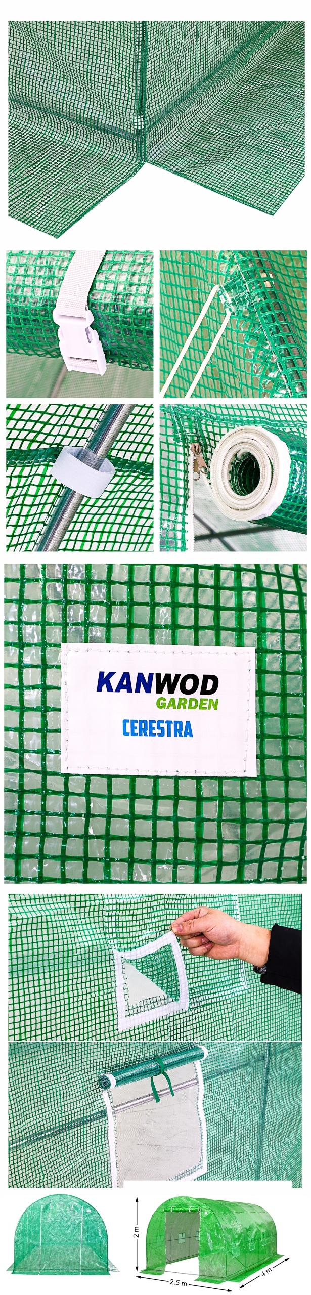 | 2 м заввишки | Посилений брезент | Рулонні двері | 9 вікон | 10м2 | Стійкий до УФ-4 випромінювання | 2 x 2,5 x 4M