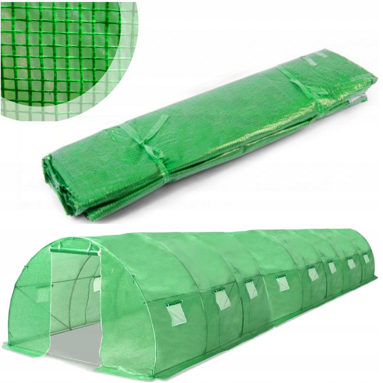 Зелена плівка для садового тунелю має УФ-захист і вбудовану сітку, завдяки чому створює ідеальні умови для розвитку теплолюбних рослин.