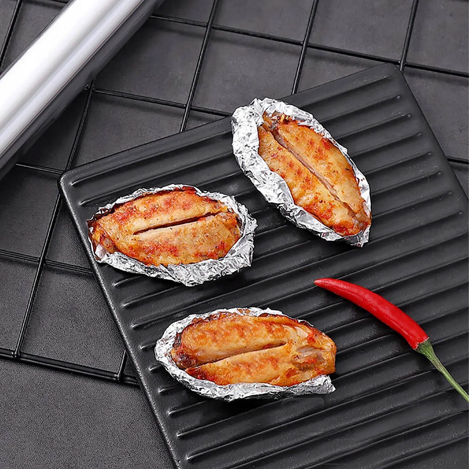 ✔️Алюмінієва фольга ідеально підходить для пакування та захисту їжі від висихання та втрати поживної цінності під дією світла. Крім того, він ідеально підходить длявипікання, смаження та гриля. Ідеальний продукт дляготелів, ресторанів, барів, піцерій і компаній громадського харчування