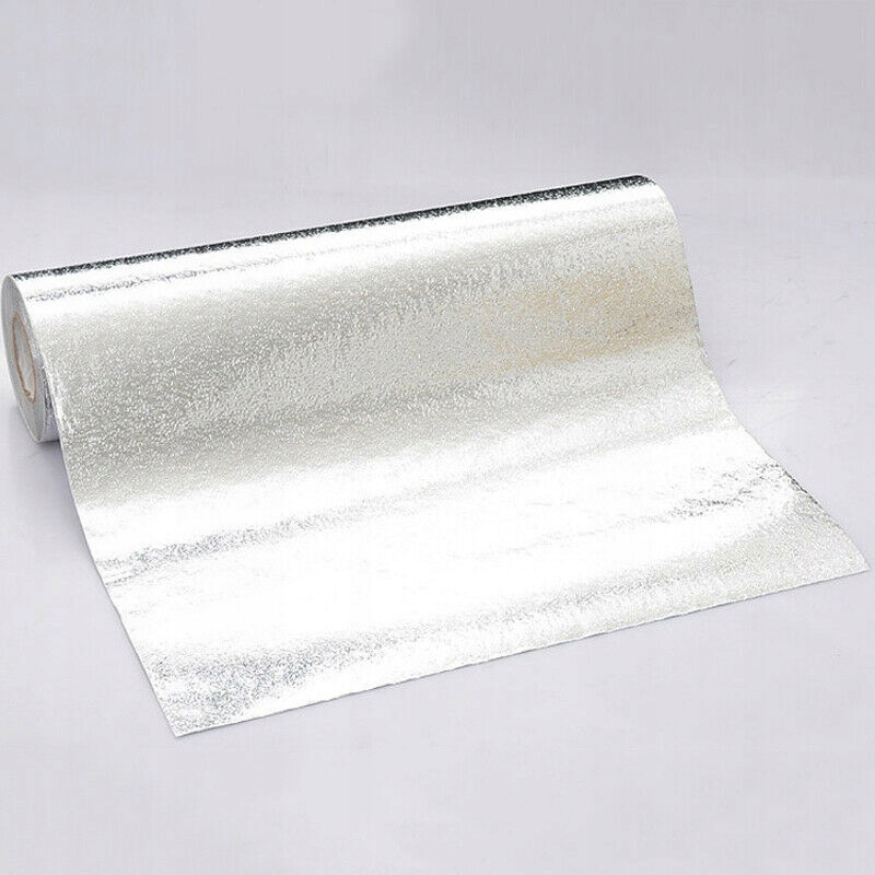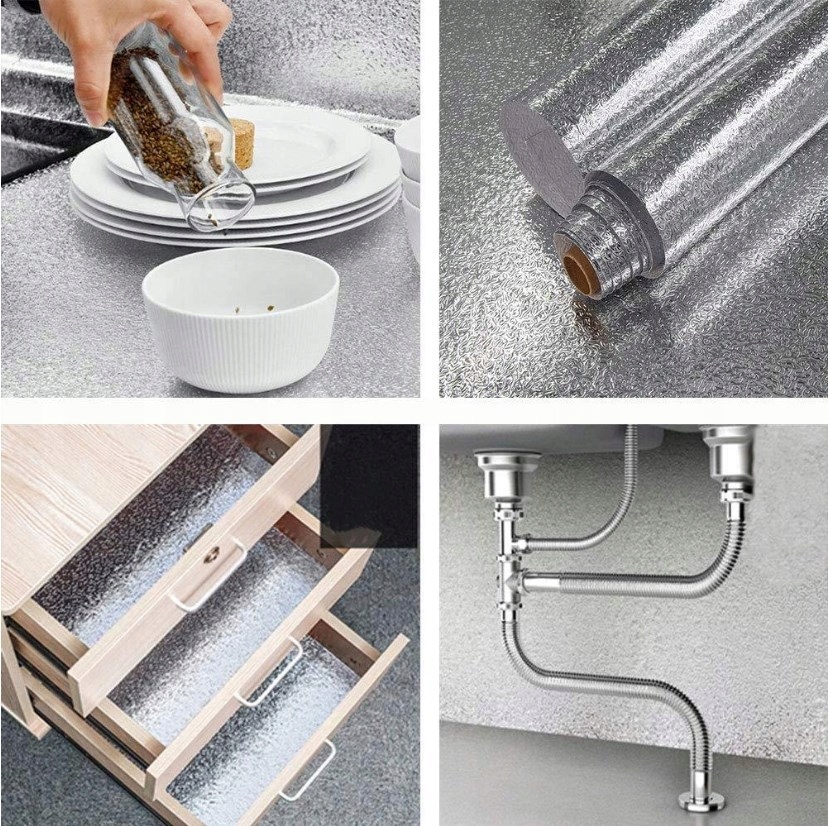 алюмінієва фольга + клей, стільниця, стіл і підлога. Для використання у ванних кімнатах, кухнях, шафах, пральнях, шкільних проектах, майстернях, офісах, ремісничих проектах та меблях. Накрийте шафи, двері, стільниці, полиці та стіни.
