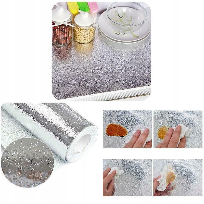 FOLIA SAMOPRZYLEPNA DO KUCHNI ALUMINIOWA ZABEZPIECZAJĄCA KUCHNIĘ 60*500CM