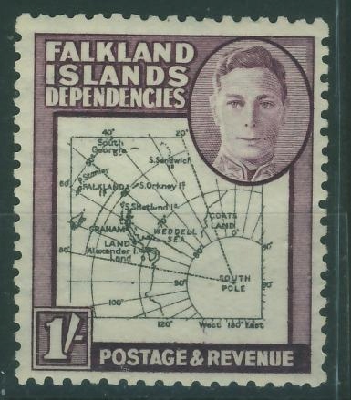 Фолклендські острови 1 шилінг. - Джордж VI, карта