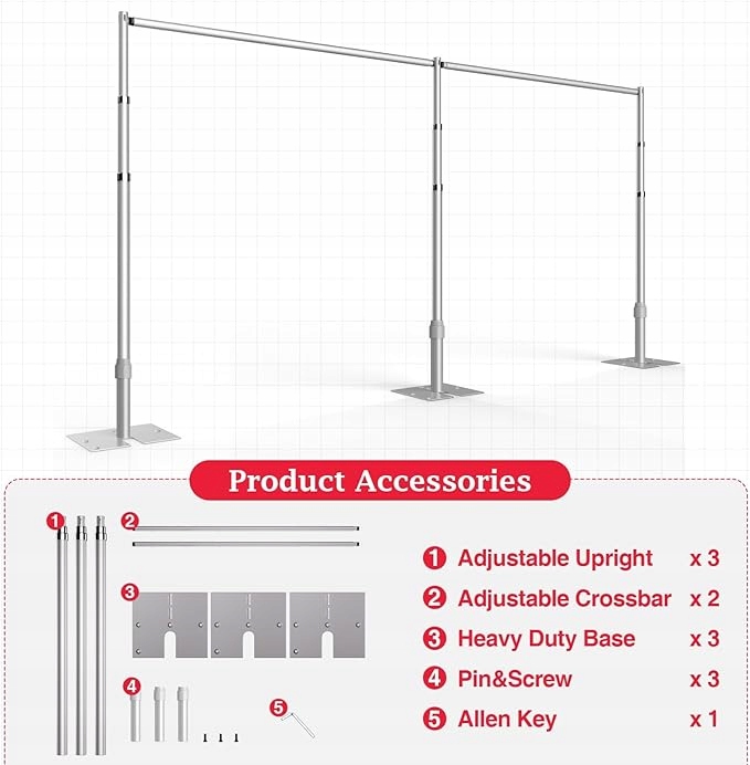 Висота та ширина підставки можуть бути вільно відрегульовані, що дозволяє налаштувати його на різний розмір фону відповідно до ваших потреб. Ідеальне рішення для гнучких фотографій та подій. Довговічність . Інструменти .