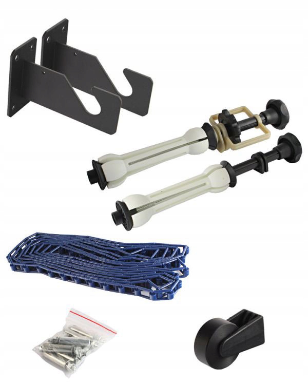 Набір можна встановити на стіні або стелі. Фони кріпляться на гільзу (картон, алюміній або інший жорсткий матеріал). Ручки збоку працюють за принципом розпірних штифтів, вкручуючи їх, ми отримуємо постійне з'єднання фону на втулці з системою підвіски. Фони розмотуються і намотуються за допомогою спеціального механізму, який зверху захищений від ковзання, а знизу має вантаж. Ви можете використовувати гвинти для регулювання сили тиску, що запобігає самостійне розкручування задників. До цього набору можна прикріпити задники будь-якої довжини (він складається з двох окремо зібраних частин)!!