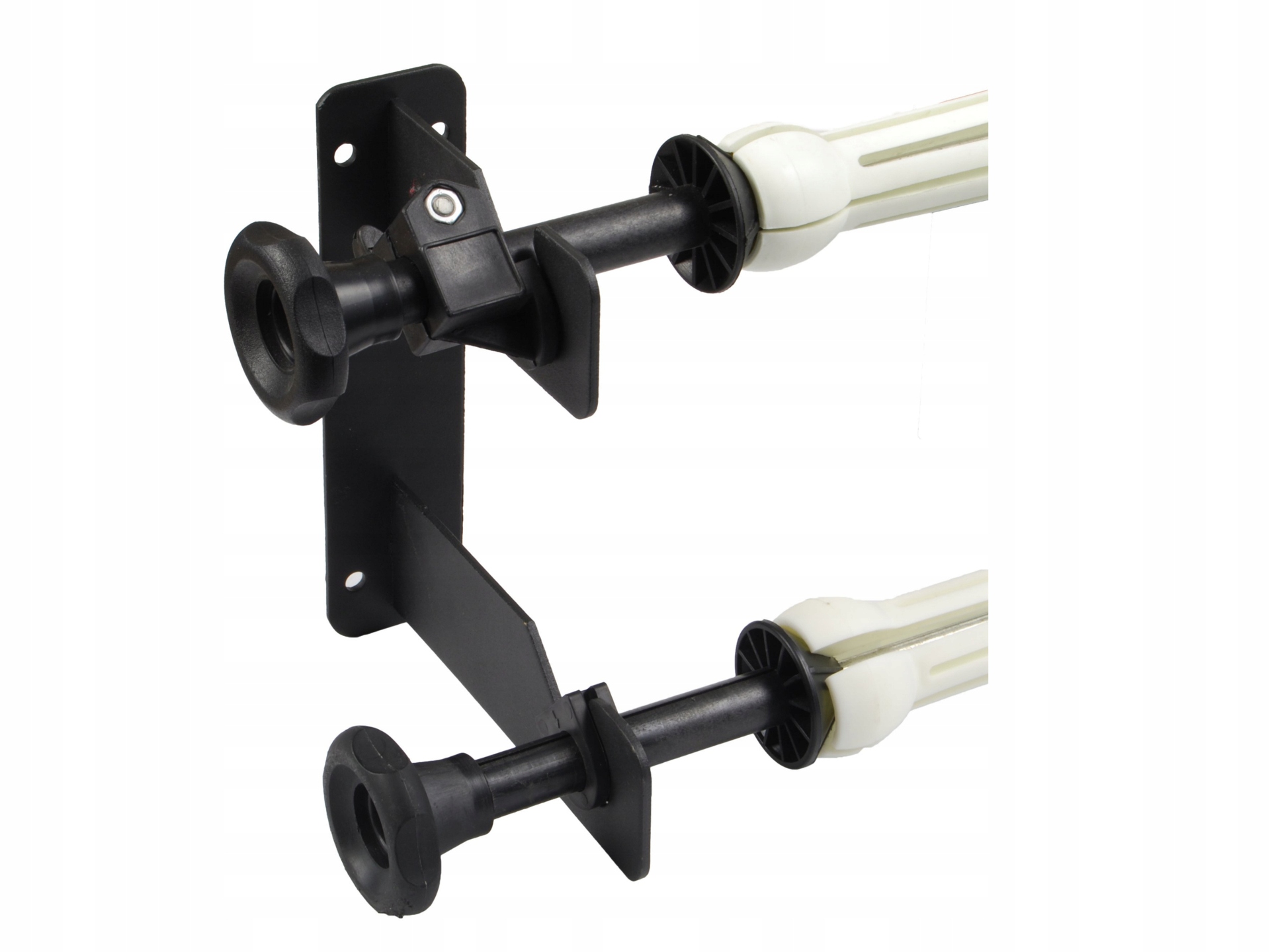 Набір можна встановити на стіні або стелі. Фони кріпляться на гільзу (картон, алюміній або інший жорсткий матеріал). Ручки збоку працюють за принципом розпірних штифтів, вкручуючи їх, ми отримуємо постійне з'єднання фону на втулці з системою підвіски. Фони розмотуються і намотуються за допомогою спеціального механізму, який зверху захищений від ковзання, а знизу має вантаж. Притиск можна регулювати за допомогою гвинтів, що запобігає самостійне розкручування задників. До цього набору можна прикріпити фони будь-якої довжини (він складається з двох окремо зібраних частин)!!