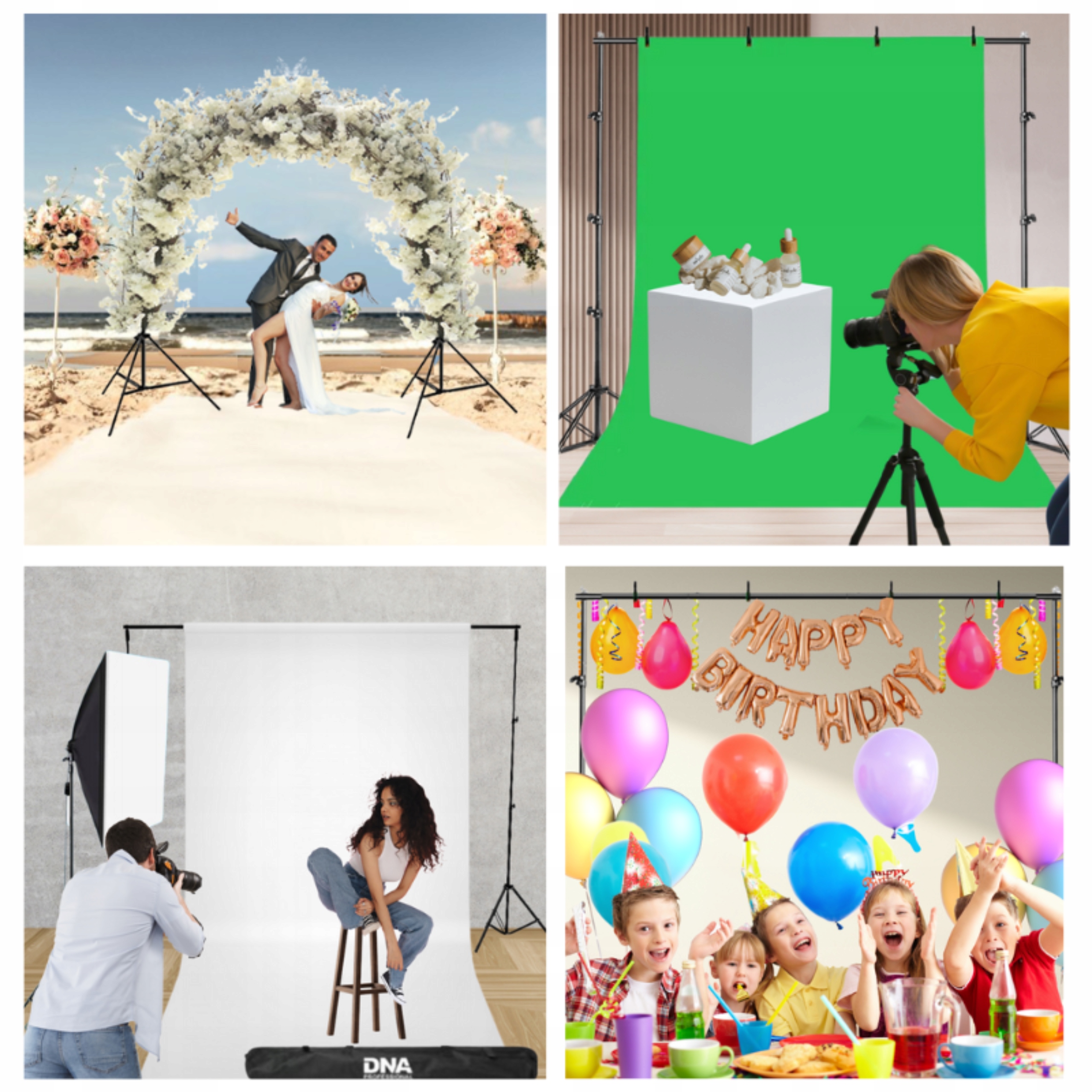Відрегулюйте набір ідеально до своїх потреб. Штативи пропонують діапазон висоти від 64 до 200 см, а телескопічний бар дозволяє розтягнути фону до 204 см завширшки.