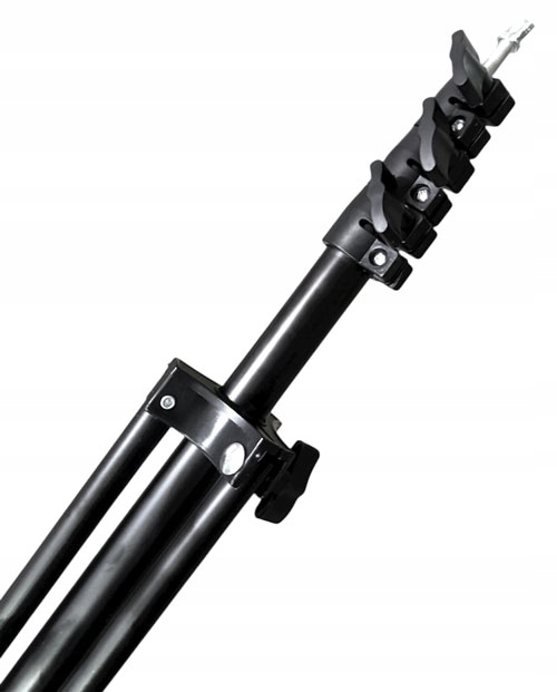 ◇ Висота штатива регулюється телескопічно в діапазоні від 80,5 см до 260 см. У цьому випадку нам потрібно 2 м, але завдяки цьому функціоналу він дозволяє при встановленій верхній перекладині використовувати інші доступні фони, напр. вініл, флізелін тощо