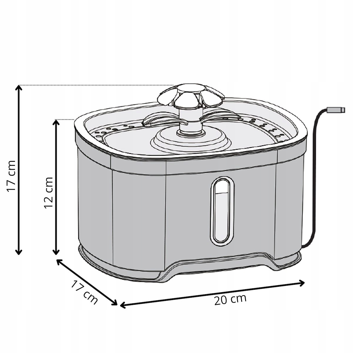 Ви можете легко підключити поїлку до джерела живлення за допомогою кабелю USB, довжина якого легко регулюється - максимум до 150 см , але якщо вам не потрібно такий довгий кабель, ви можете заховати зайве всередину пристрою, щоб він не збирав зайвий пил на підлозі. До штекера USB можна підключити будь-який стандартний блок живлення, наприклад ваш телефон