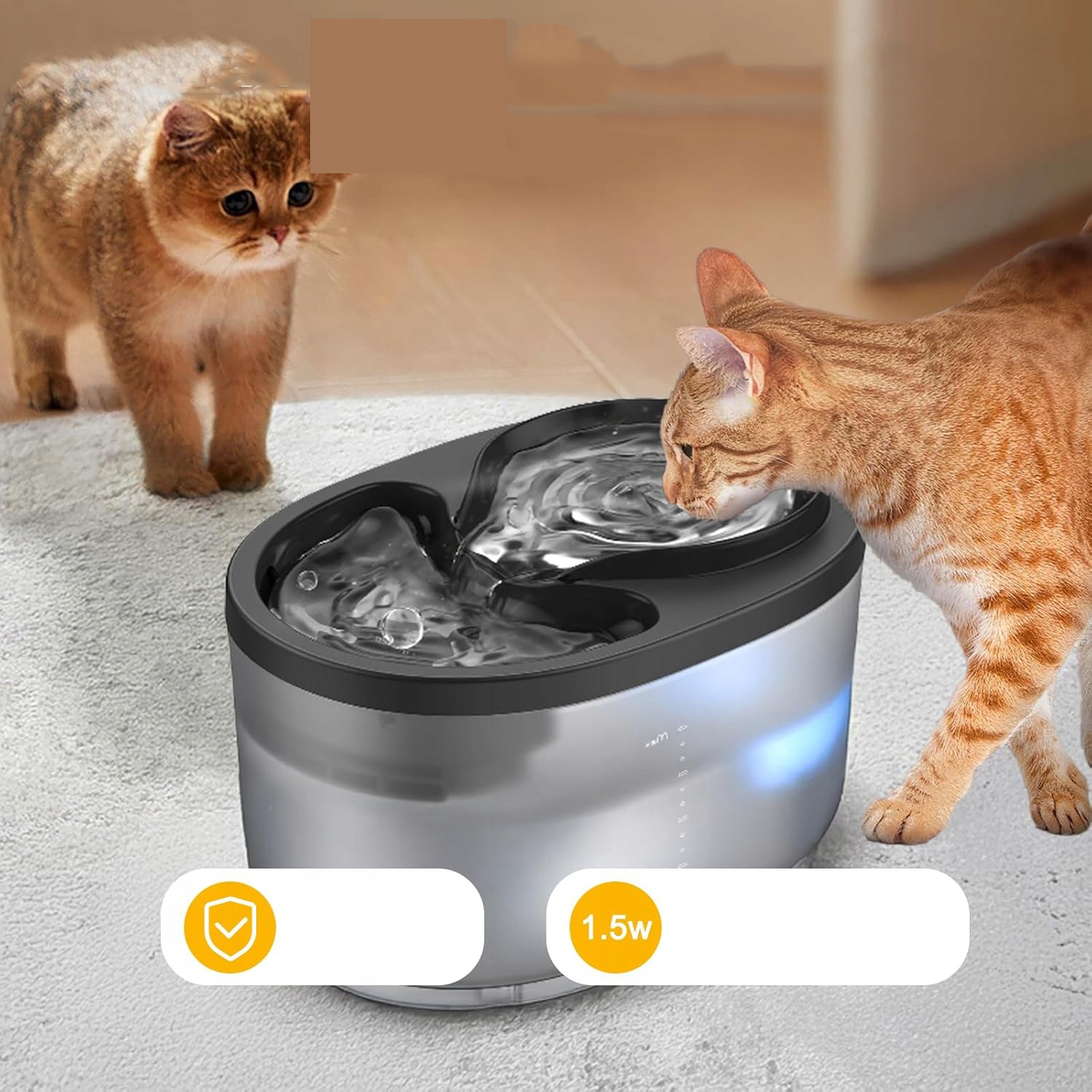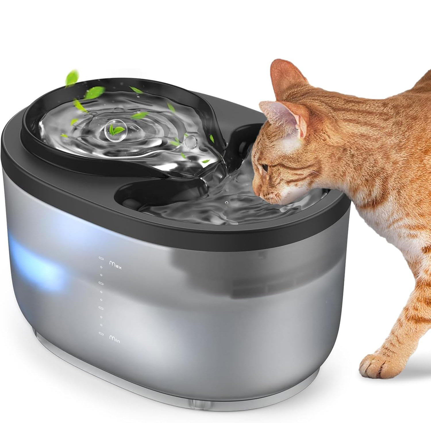 🐈🐈 прозорий фонтан із світлодіодним освітленням: прозорий резервуар із вбудованим світлодіодним світлом дозволяє легко контролювати рівень води в будь-який час. Делікатний синій світлодіод також допомагає перевірити фонтан вночі, не знімаючи обкладинку