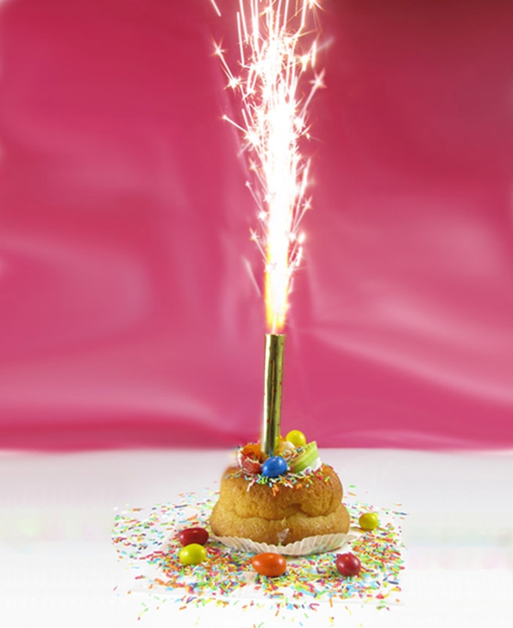Тортовий фонтан є поширеним доповненням до святкових і весільних тортів. Клейк для торта має пластиковий наконечник, завдяки якому ви легко встромите його в торт. Коли фонтан запускається, злітають золоті та срібні іскри.