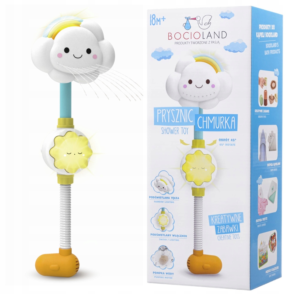 Чарівна кольорова іграшка-хмаринка для купання з цікавим дизайном, яка приверне увагу та розвине уяву кожного малюка. Продукт чудово розвиває здатність розпізнавати форми, розслабляє завдяки ніжному душу та пробуджує цікавість завдяки делікатним освітленим елементам. Хмару можна використовувати у ванні, басейні або дитячому басейні. Стійкий до погодних умов.