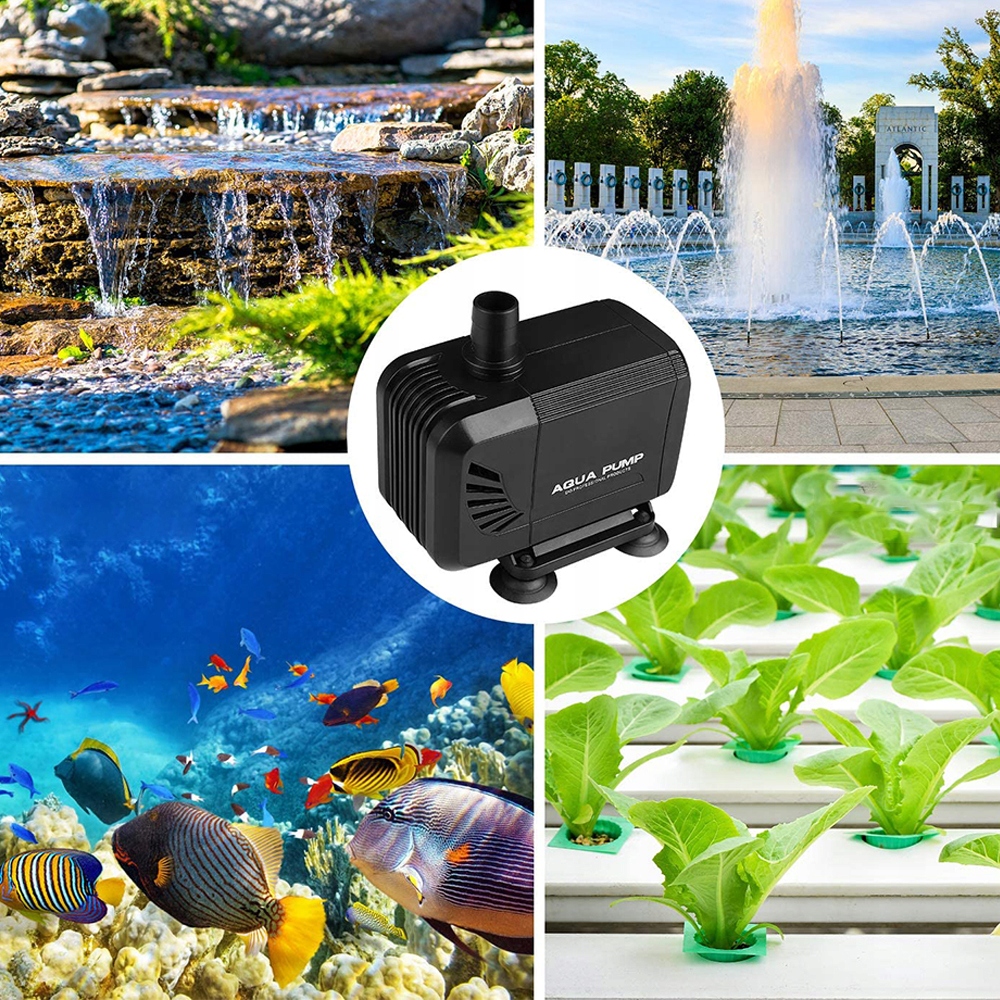 ☑ Молодий обсяг застосувань: Фонтанний насос може забезпечити циркуляцію в резервуарі та забезпечити свою прекрасну рибу природним середовищем. Цей полотливий водяний насос може генерувати потік води і ідеально підходить для фонтанів водоспаду, акваріумів, ставків, садових статуй та гідропонічних систем