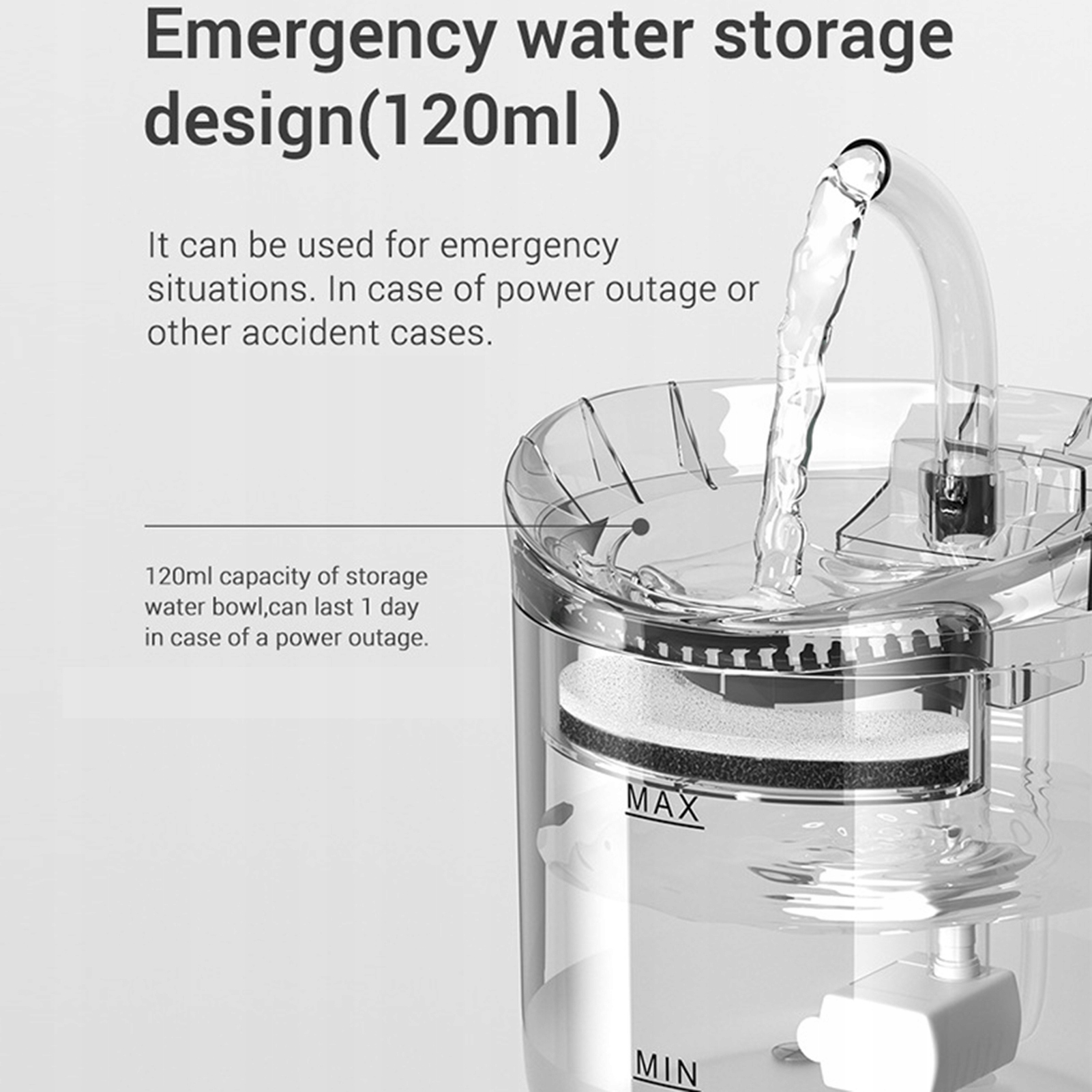 1. Висока потужність 2,0 л: Ніколи не хвилюйтеся, що у вашої тварини не вистачає питної води. 2 Режими потоку води: каррі з водопровідної води: undente -wit підборіддя тварини; Вода з фонтаном: Ваша тварина може пити воду на великій площі. Потрійна фільтрація: Губка може адсоронна тварина та домішки, шар смоли іони може пом'якшити водопровідну воду, а шар активного вуглецю може видалити бруд. Тихого насоса: Звук менше 40 децибелів, що забезпечує спокійне життєве середовище та створює близьке, природне вживання алкоголю для вашого вихованця. Будівництво з нахилом 6: Більш підходить для домашніх тварин, щоб пити воду під кутом, зменшує тиск питної води в хребті тварини. Прозора структура тіла: Цей дозатор води обережно прозорий, ви можете побачити решту води в будь -який час. Функція для зберігання аварійних вод: Ви можете забезпечити тварину 120 мл аварійної води, коли живлення виливається. Знімний: тіло кола не дозволить тварині боліти, знімна конструкція є ATA в складі та очищенні. Легко ковзати: Ви можете їхати безпосередньо до порту USB або використовувати спеціальний банк живлення.