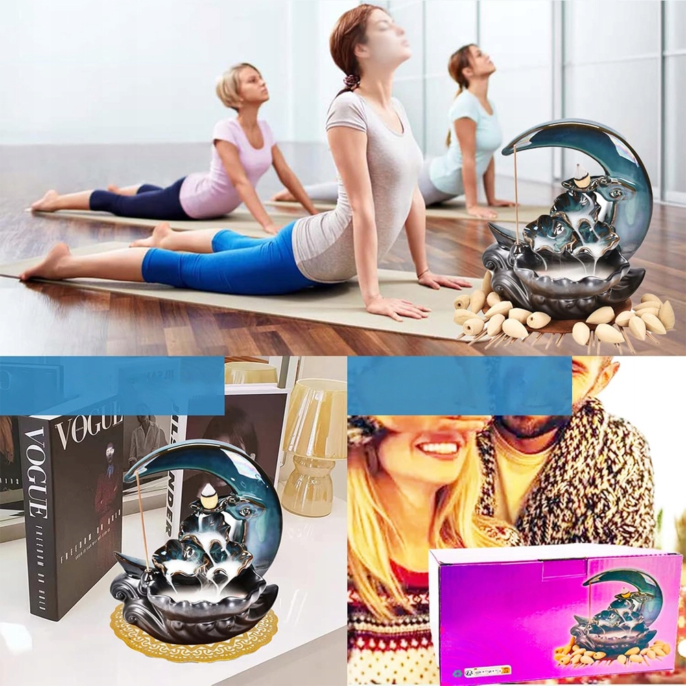 💯 Керамічна курильниця Moon із зворотним потоком зі 100 ароматичними конусами та 30 ароматичними паличками🚀