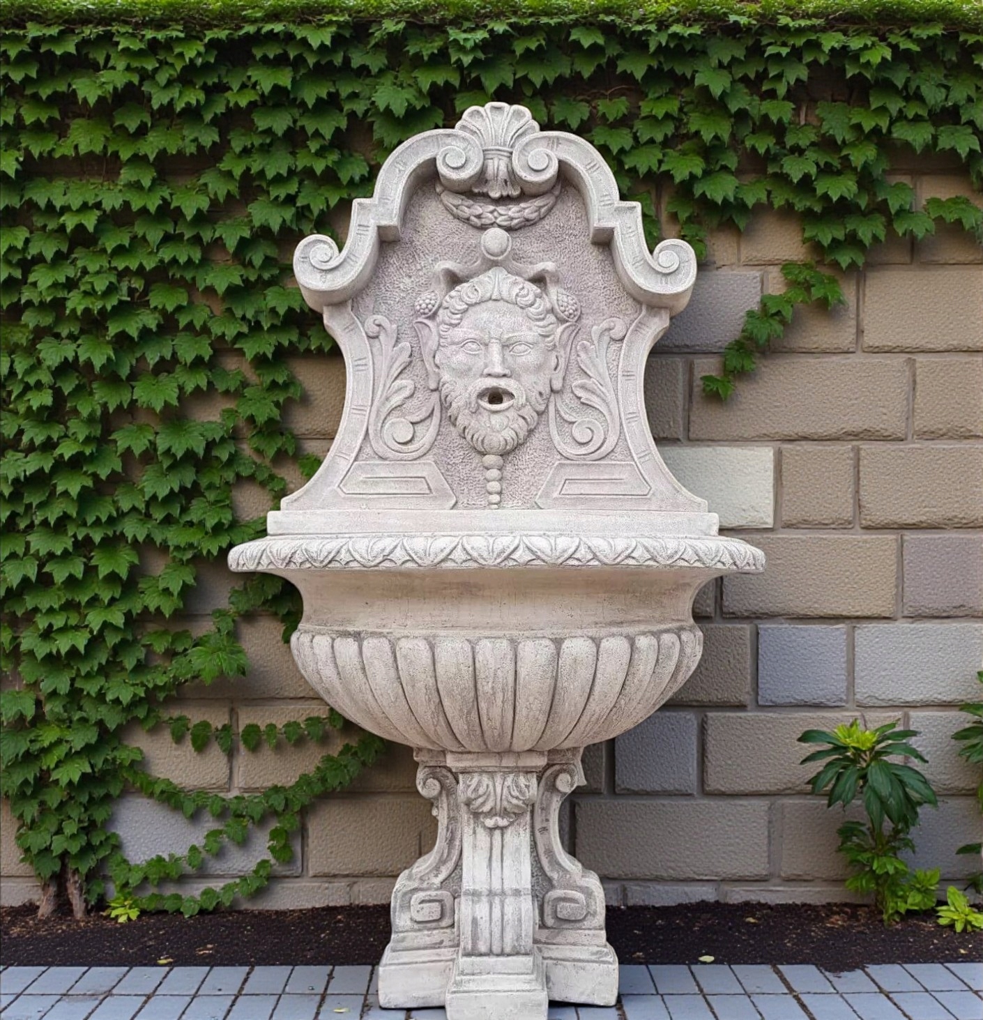 Старовий фонтан ручної роботи в імперському стилі. Виготовлена ​​з бетону та прикрашена характерними мотивами. Загальний зріст 182 см. Унікальний декоративний елемент для саду чи тераси.