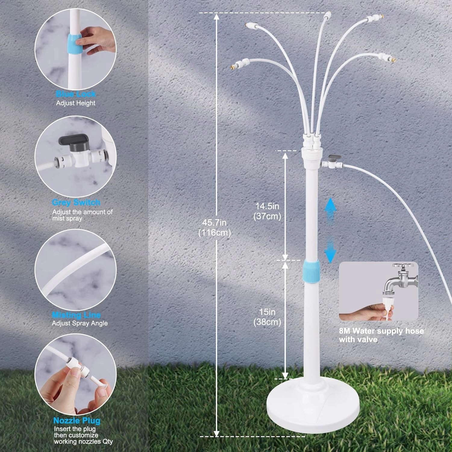 【Водні розваги для дітей і домашніх тварин】 Лійка з охолоджуючим туманом підходить для дитячих ігор влітку, не тільки охолоджуючи спеку, але й функціонуючи як аквапарк. Також підходить для вашого улюбленого улюбленця, особливо для цуценят.