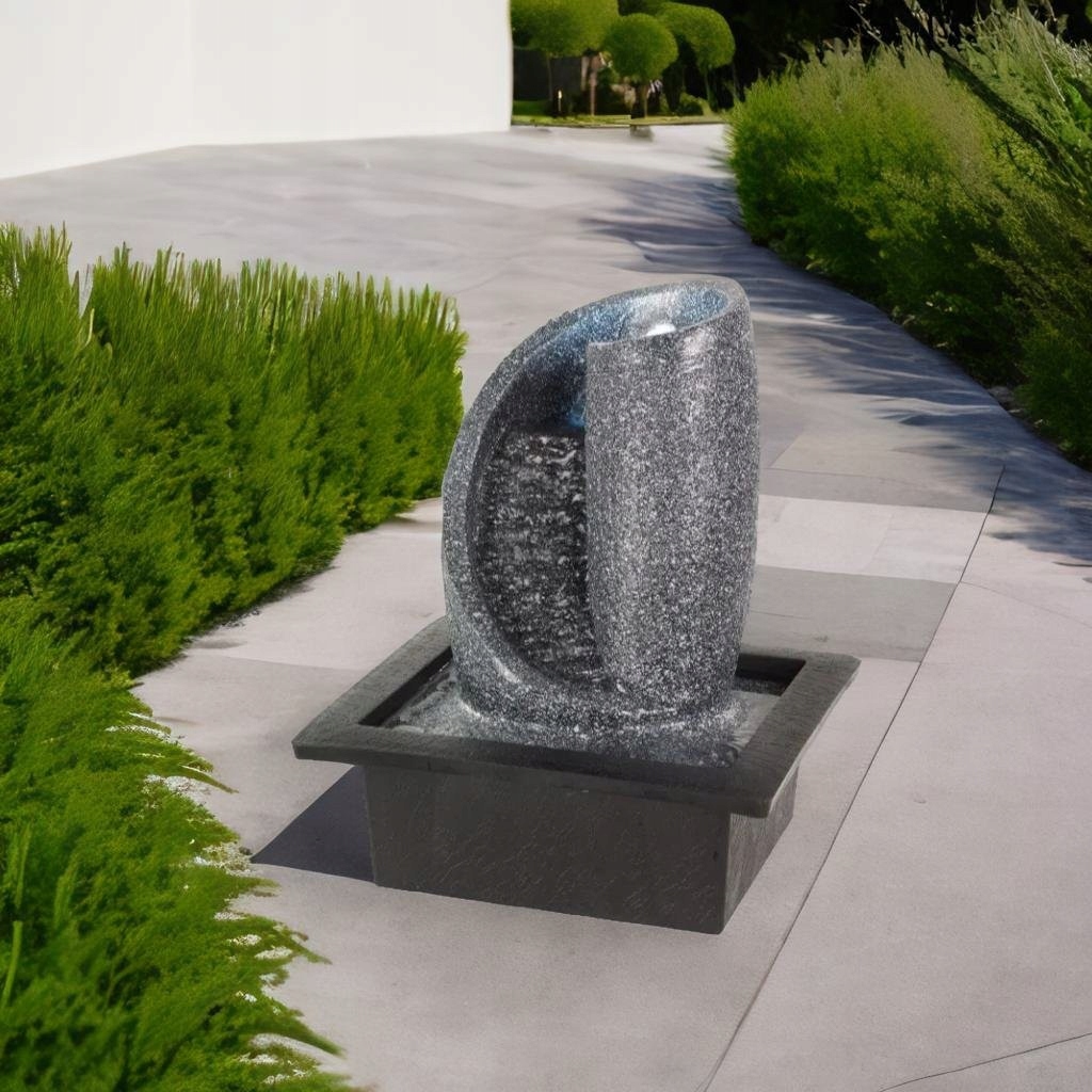 Водяний контур замкнутий, фонтан повністю самодостатній, додатковий резервуар не потрібен (проте пам’ятайте, що кожен фонтан цього типу потрібно регулярно доливати воду, тому що вода випаровується і занадто низький рівень може пошкодити насос).