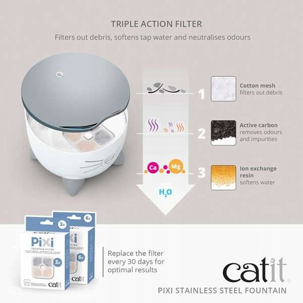 Автонапувалка, фонтанчик для кішок Catit PIXI 2.5L + безкоштовний фільтр, ефективно спонукає кота пити, забезпечуючи йому постійний доступ до води відмінної якості.