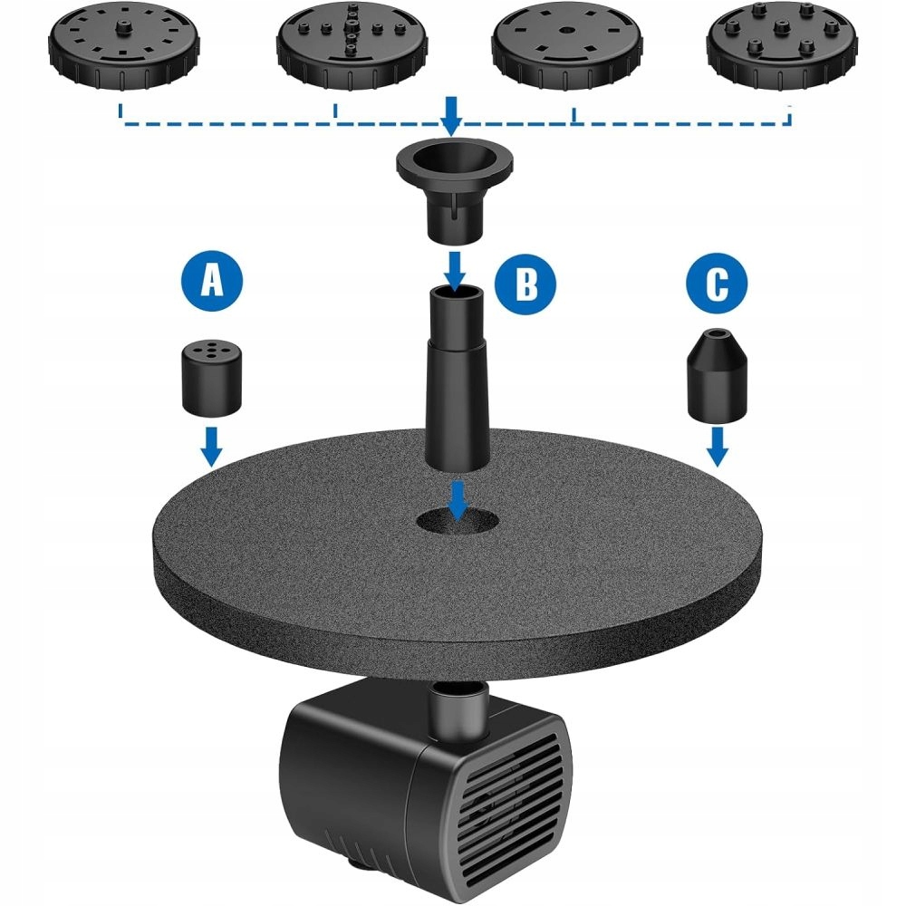 - ☀️ 【4 різні ефекти струменю води】: 4 різні форсунки можуть відповідати різним вимогам щодо висоти або форми водяного стовпа водяного стовпа, міцні декоративні елементи, які зроблять ваш садовий ставок красивішим і жвавішим, замикається конструкція, проста заміна форсунок. (Якщо фонтан розміщено в меншій купальні для птахів, рекомендовано не встановлювати насадку, щоб запобігти витіканню води з ванни для птахів)