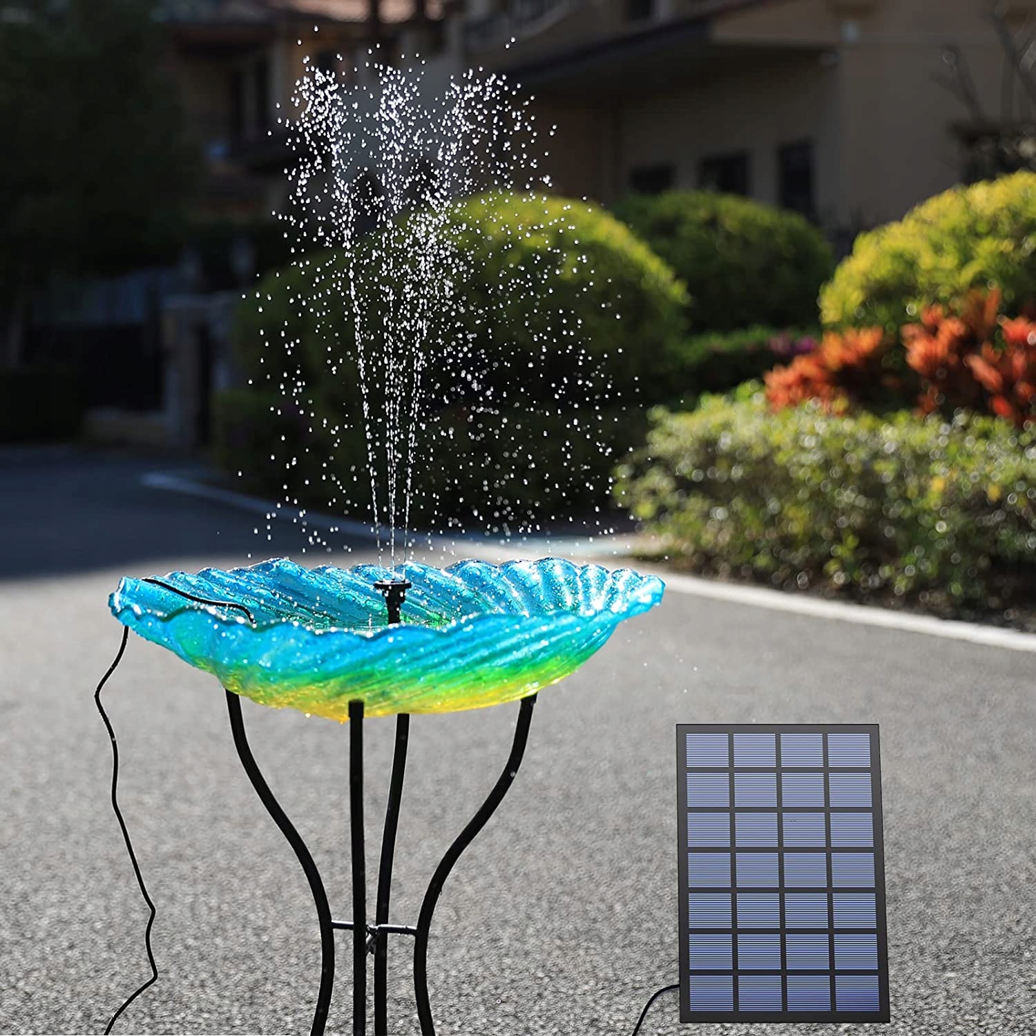 ☀️незалежний сонячний фонтан. Вільно переміщайтеся в різні місця, без складного монтажу та обслуговування, ви можете насолоджуватися цікавим життям свого саду. Кабель між сонячною панеллю та насосом достатньо довгий (кабель 3 метри), щоб покрити відносно велику площу, не побоюючись, що насос не працює в тіні.