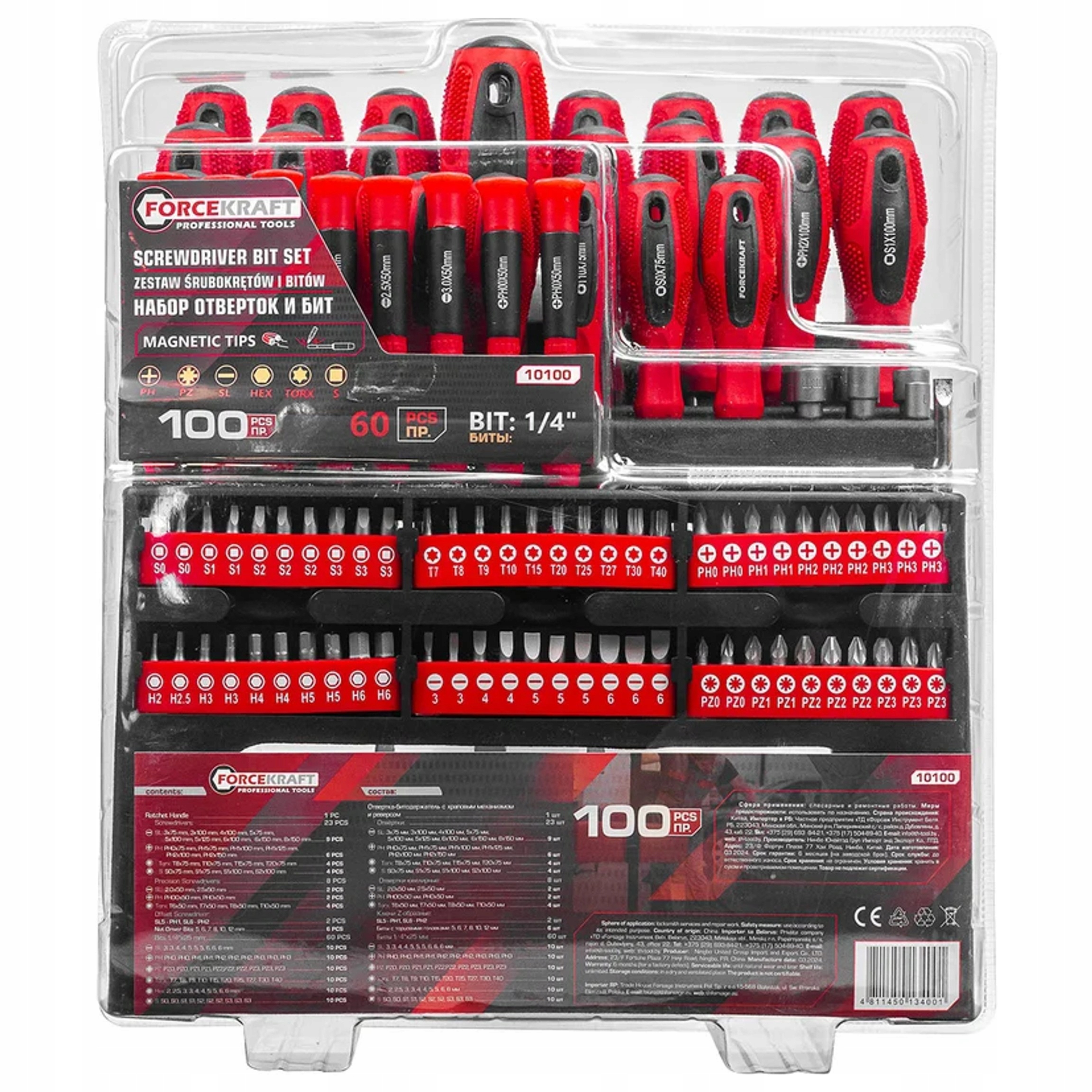 FORCEKRAFT Набір ВИКРУТОК шуруповертів БІТ 100 ЕЛЕМЕНТІВ В ПІДСТАВЦІ