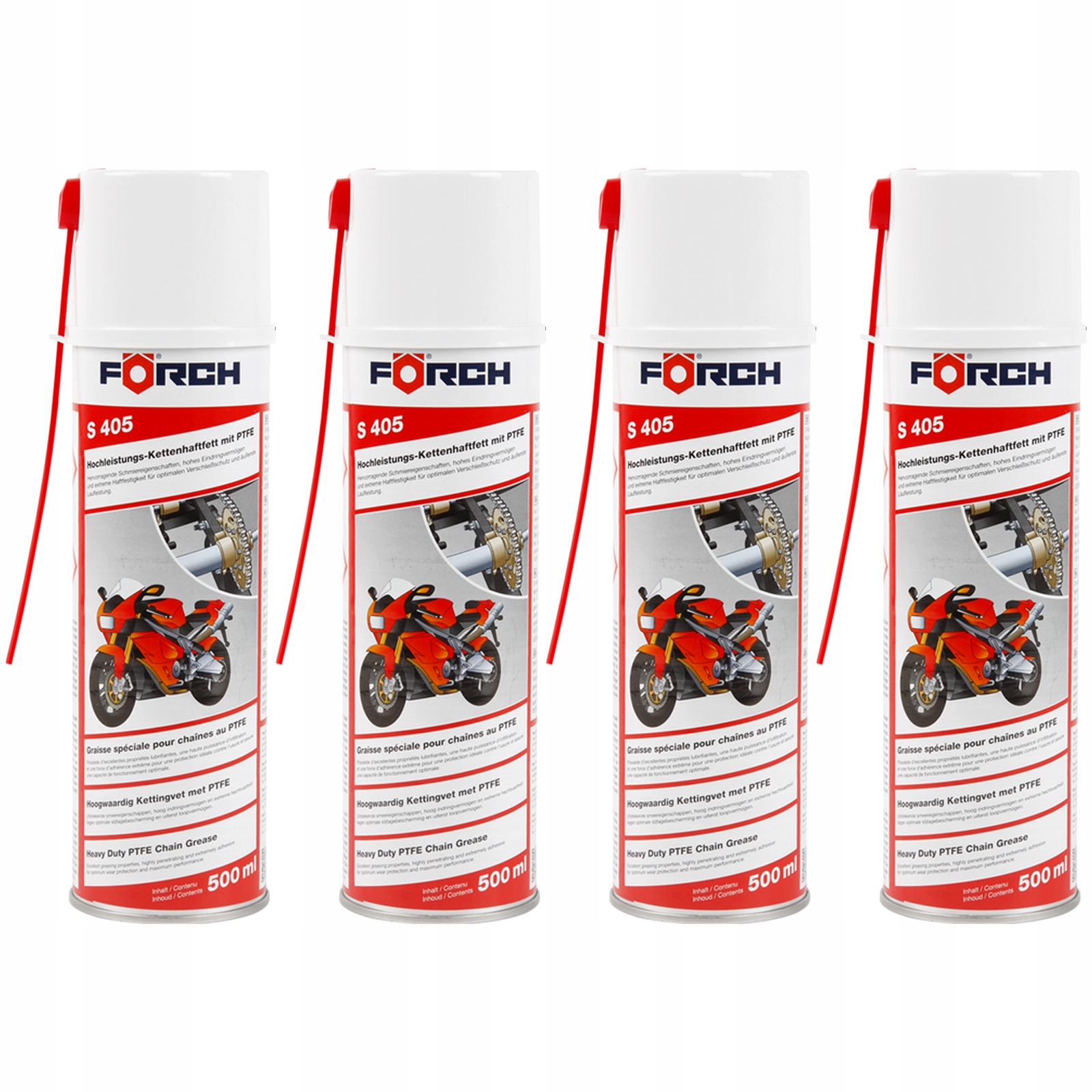 Мастило для ланцюга Forch S405 (6509 5500) спрей PTFE 2 л (4 x 500 мл). Для змащування та тривалого обслуговування ланцюгів двоколісних транспортних засобів.