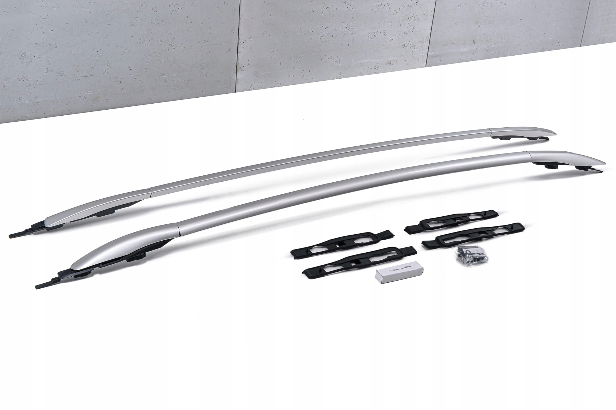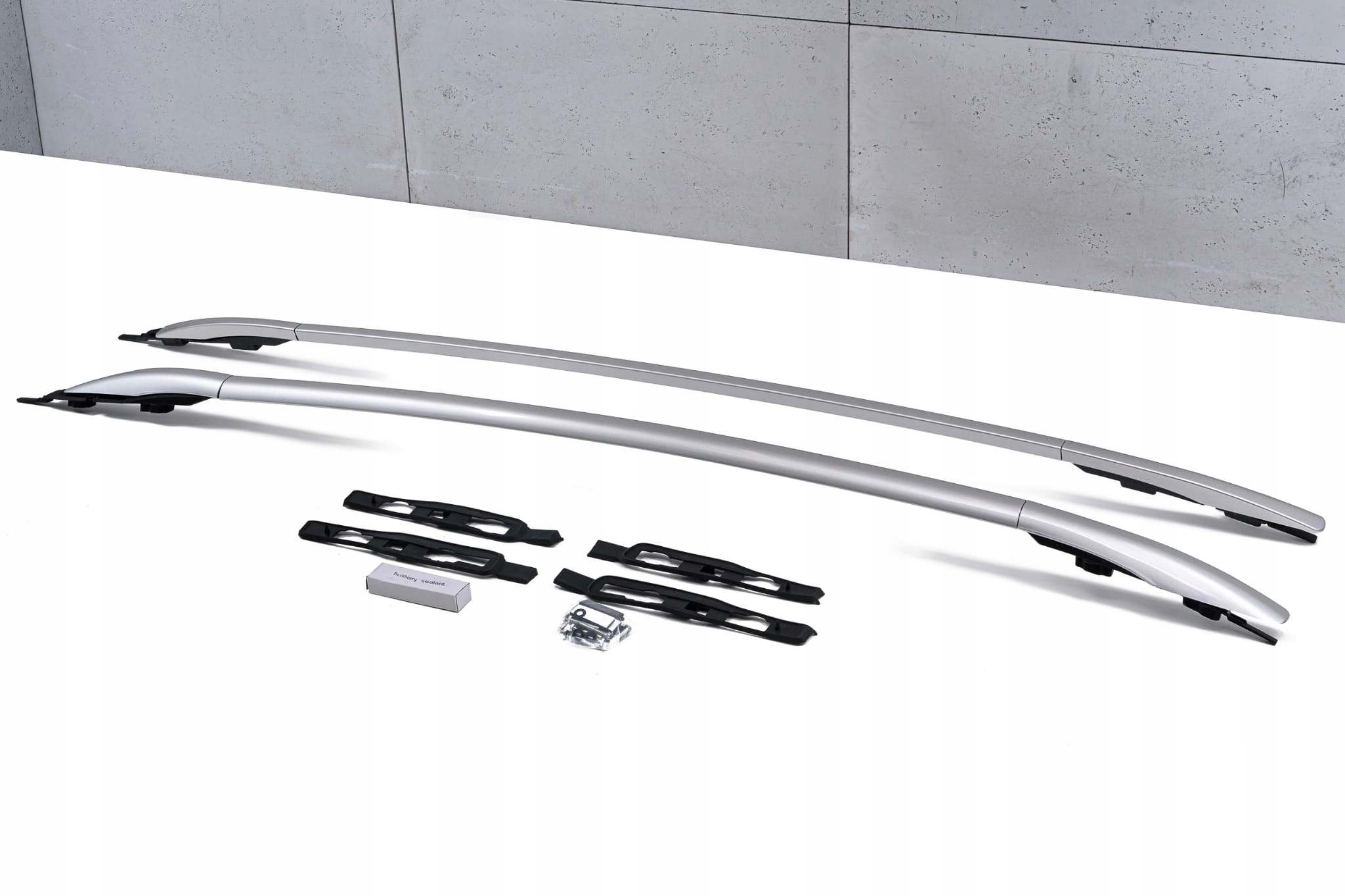 Виріб виготовлено з високоякісного алюмінію та ABS-пластику. У комплект входить набір рейлінгів для лівої та правої сторін. Поручні встановлено на заводі за допомогою кріплень, що входять у комплект.