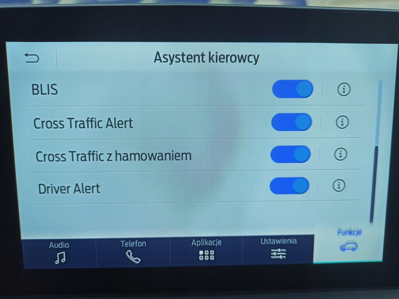 - асистенти водія (камера, «мертва зона», передній асистент, контроль перехресного руху ззаду, асистент лінії.. тощо)
