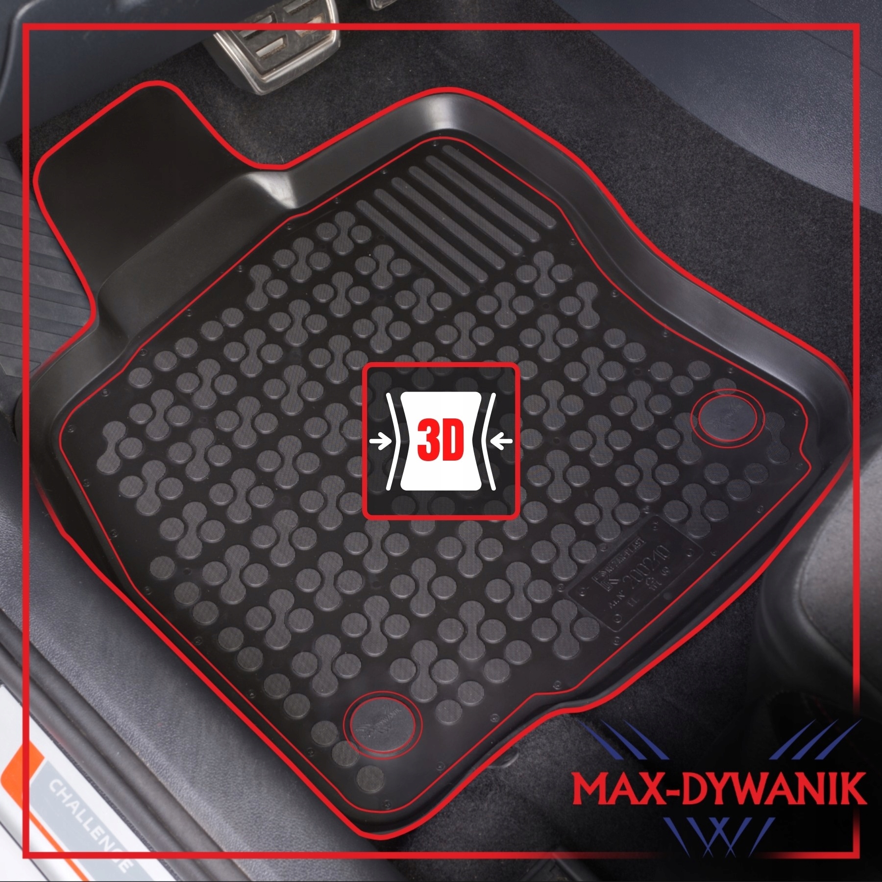 Пропоновані килимки були точно розроблені за формою дошки підлоги, враховуючи не лише марку/модель, але й рік випуску автомобіля, тому килимки ідеально підходять. Килимки виготовлені з високоякісних термоеластомерів (синтетичних каучуків), стійких до фізичних і хімічних факторів (бензин, мастила, розчинники). Високий захисний комір навколо килимків ефективно утримує воду та бруд, захищаючи оригінальну оббивку автомобіля від бруду, а завдяки своїй гнучкості кромка ідеально прилягає до країв, не залишаючи порожніх місць. Характерні колеса з функцією протиковзання та характерний дизайн надають салону автомобіля унікальний вигляд та елегантність. Безпечний у використанні завдяки практичній та зручній системі кріплення до підлоги автомобіля. Система кріплення адаптована до марки/моделі автомобіля та захищає килимок від переміщення під час руху.