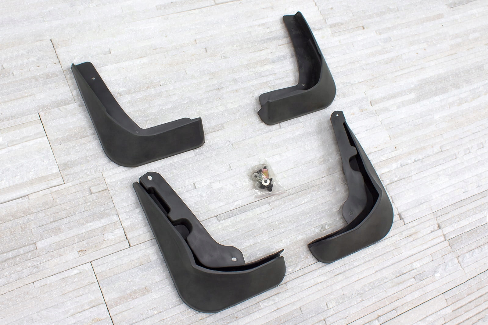 У набір входить набір із чотирьох бризговиків та елементів кріплення. Виріб встановлено на заводські місця, без додаткових доробок. Ми рекомендуємо установку в професійній майстерні.