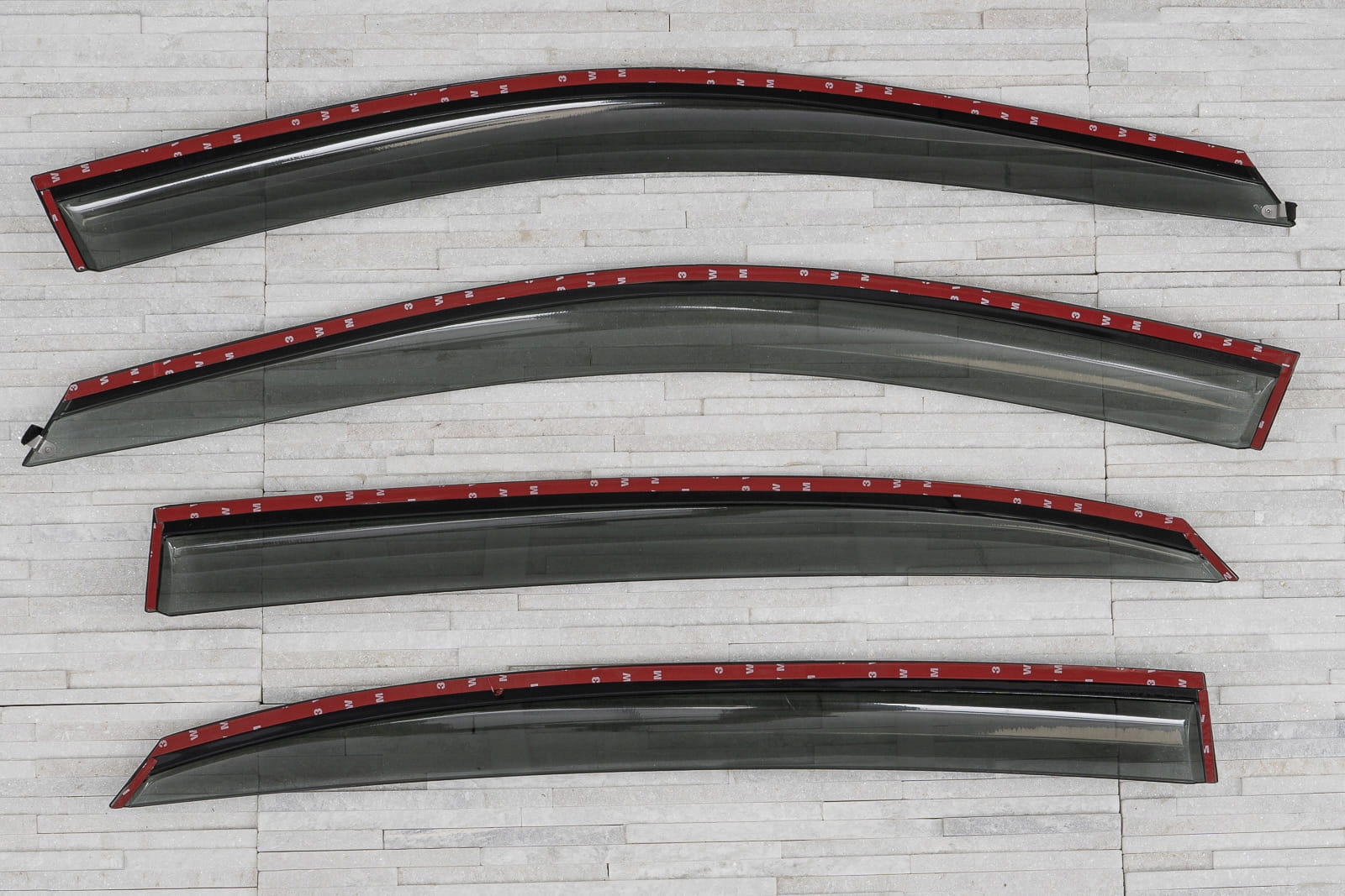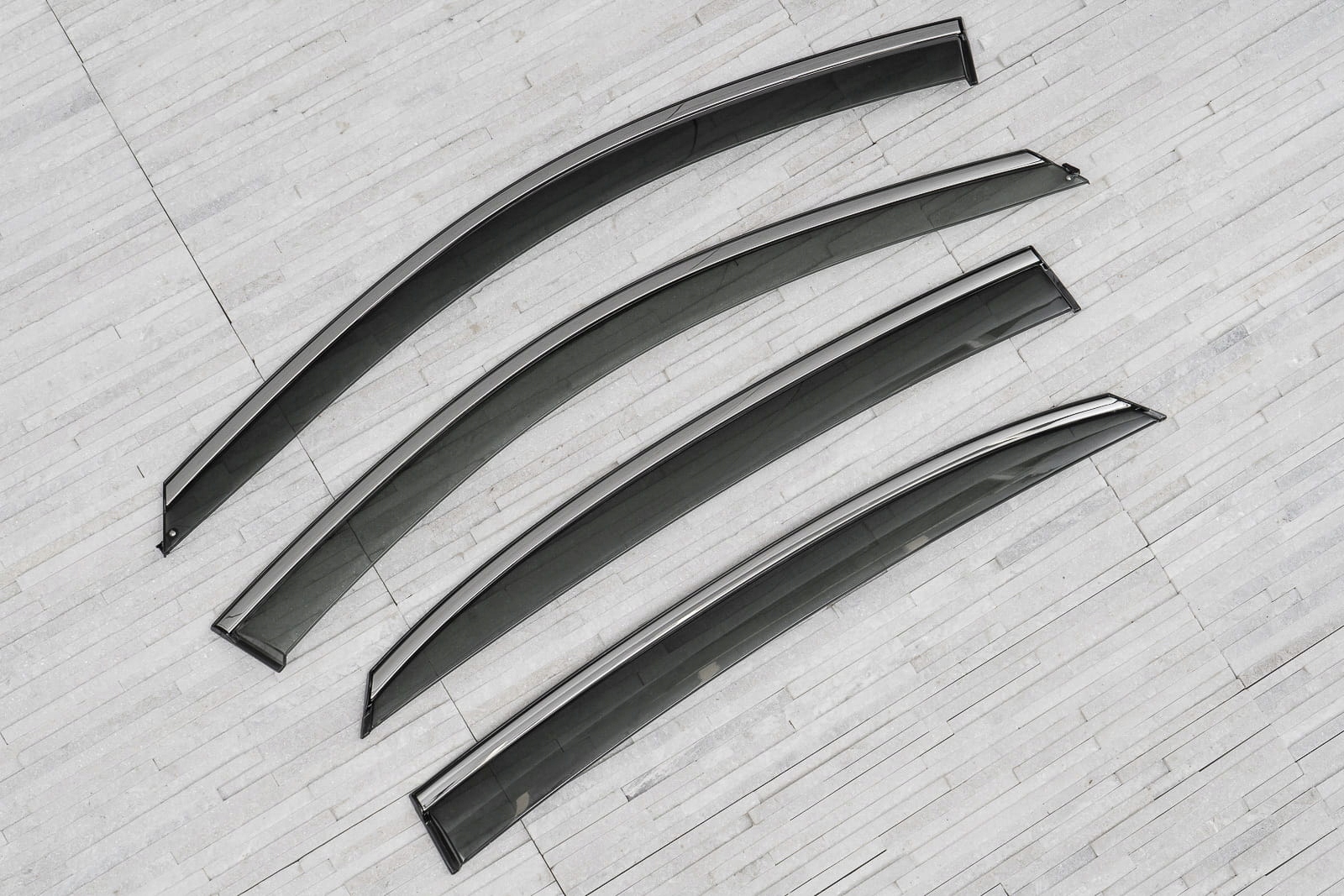 Вони забезпечують мандрівникам комфорт у сонячні дні, а коли сонце яскраве, вони виконують роль сонцезахисних окулярів. Крім того, вони зменшують забруднення бічних вікон, забезпечуючи кращу видимість у дзеркалах. Сучасна та аеродинамічна форма кожного елемента набору підкреслює стилістичну лінію автомобіля. Виріб виготовлено з високоякісного АБС-пластику зі сталевими смугами. У набір входить набір із чотирьох обтічників (переднього та заднього).