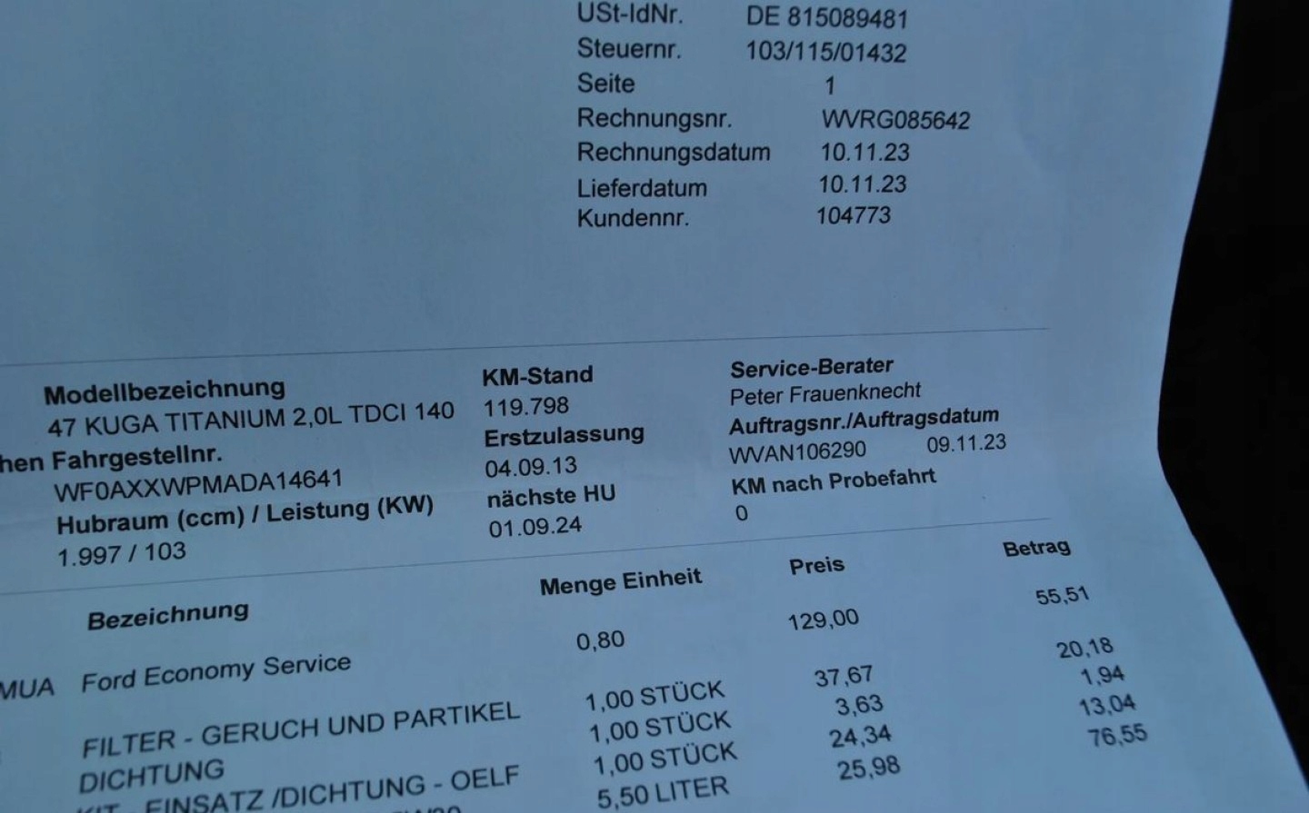 У мене є фотографії з моменту покупки та транспортування автомобіля з Німеччини до Польщі. імпортований автомобіль Ford Kuga II придбаний у приватної особи. Автомобіль має дуже хороший і економічний 2,0 TDCI двигун із 140 к.с., який працює дуже тихо і рівномірно. Автомобіль знаходиться в ідеальному технічному та візуальному стані. Фарбування покриття, виміряне сертифікованим лічильником лаку. Будь ласка, пам’ятайте, що автомобіль не є новим салоном, це вживаний транспортний засіб і носить мікрополя використання, і я вважаю його стан ідеальним! Книга служби та TUV