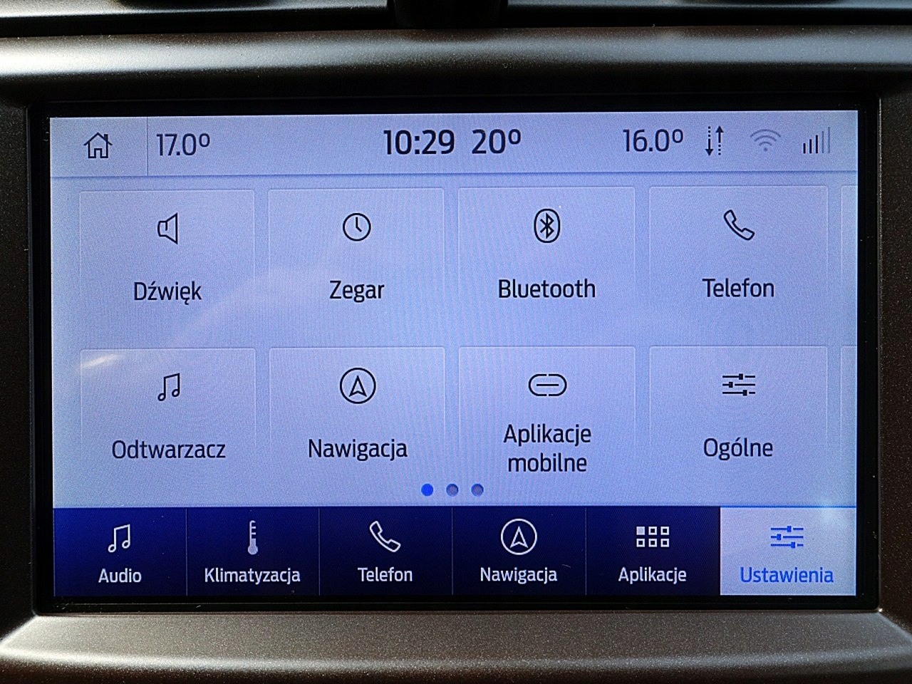 Супутникова навігаційна система CD/MP3 із кольоровим сенсорним дисплеєм Ford SYNC 3, 8", AppLink, TMC, комплект гучного зв’язку з Bluetooth® і розширеною функцією голосового керування польською мовою, 2 USB-порти, пульт дистанційного керування на кермі, карти Європи з 3D-переглядом, навігаційне текстове меню польською мовою