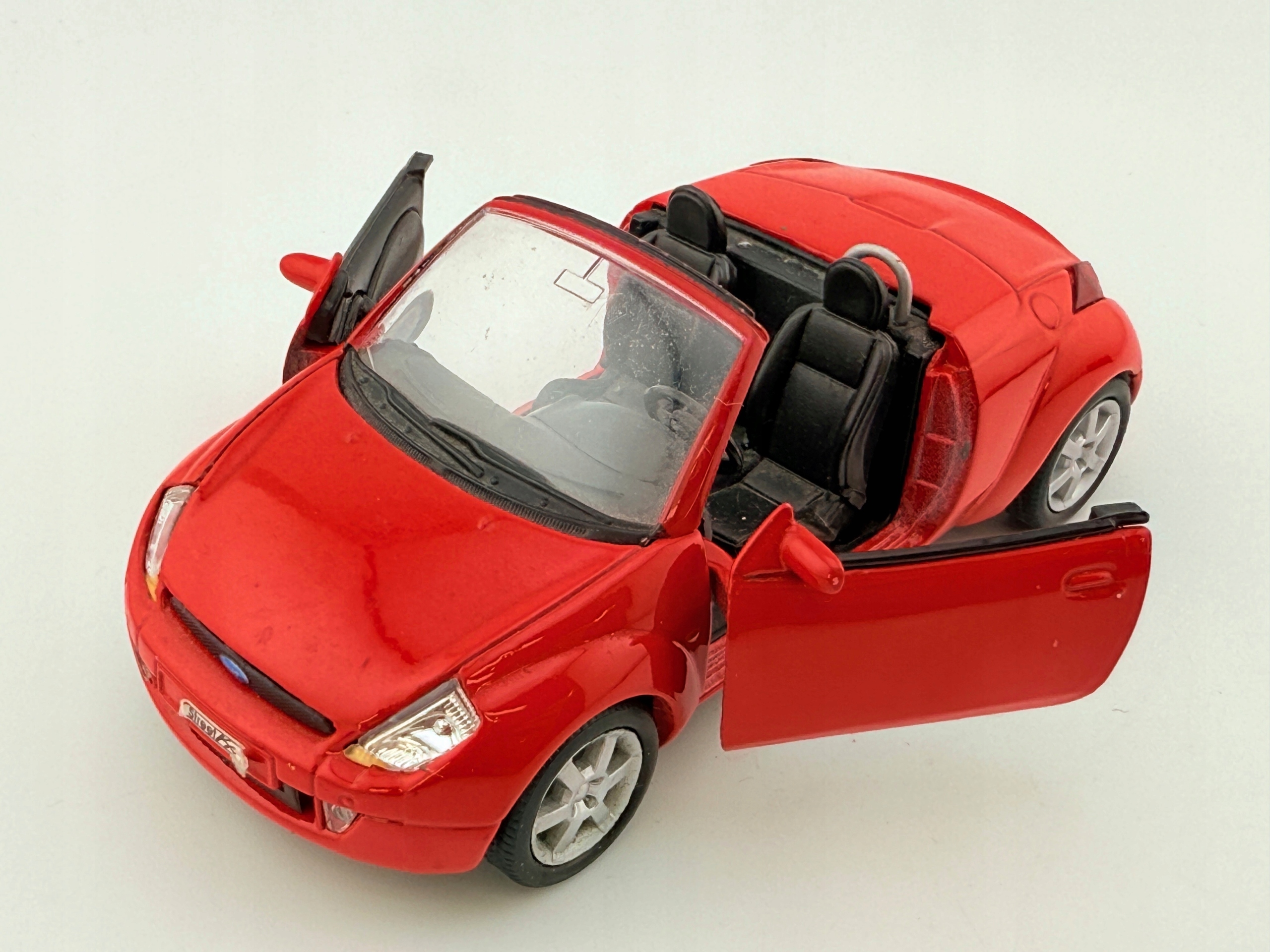 Ford Streetka за шкалою 1:60 - це унікальна пружина, яка привертає увагу своїм яскравим червоним кольором та детальним інтер’єром. Модель виготовлена з металу та пластику, що забезпечує надійність та естетику. Двері відкриття дають йому інтерактивність, яка рідко зустрічається в цьому класі моделей. Добре розроблені деталі, такі як диски та інтер'єр, роблять це чудовим вибором для колекціонерів. Цієї весни, незважаючи на незначні ознаки використання, виглядає дуже добре і, безумовно, збагатить будь -яку колекцію.