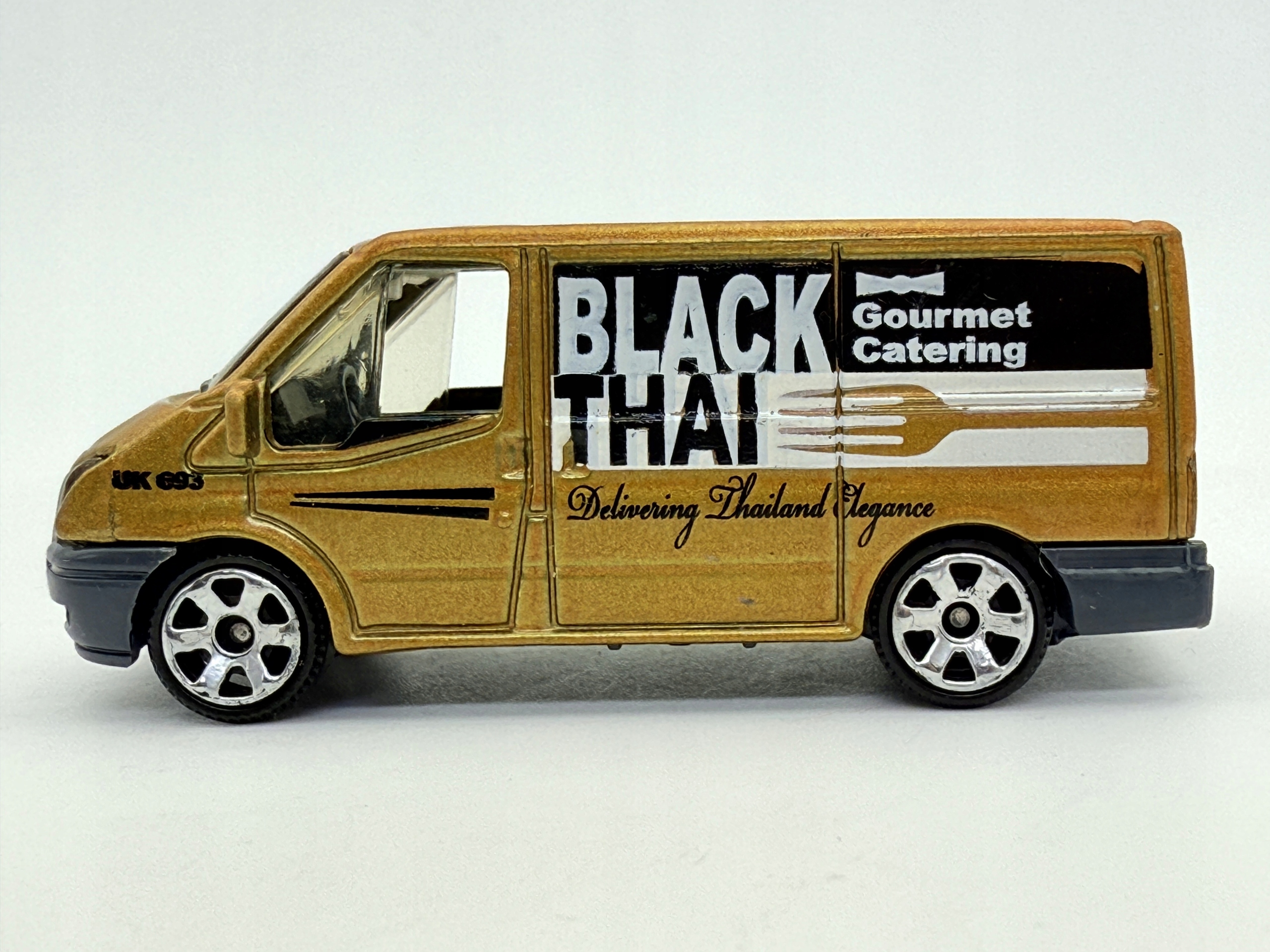 Модель заснована на реальному транзиті Ford з 2007 року. Кольорові мотиви - це золотий колір з чорно -білими відбитками громадського харчування. Він не належить до конкретної тематичної серії, а представляє сучасні міські комерційні транспортні засоби.