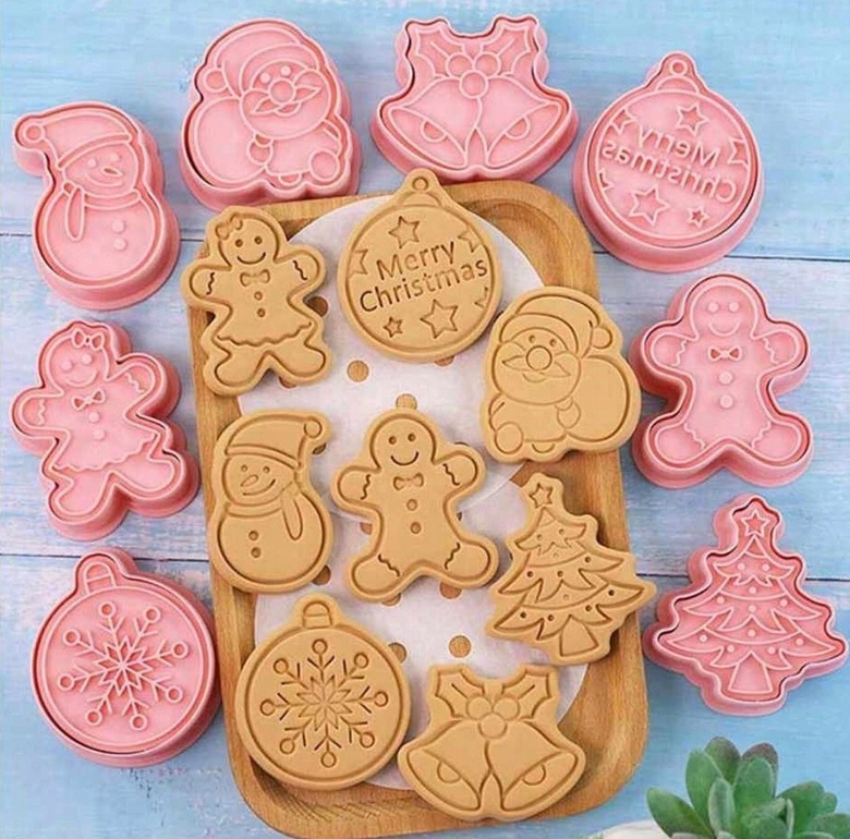 FOREMKI DO CIASTEK PIERNIKÓW BOŻE NARODZENIE zestaw 8szt DOCISKANE STEMPEL
