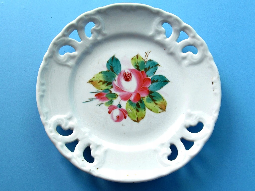 Красива, старовинна порцелянова ажурна тарілка з ручним розписом кінця 19 століття.