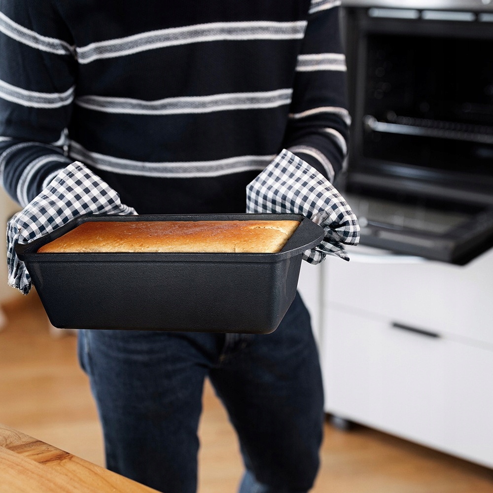 Прямокутна форма для випічки хліба та інші страви. Прямокутна форма ідеально підходить для випічки підсмаженого хліба, паштету, бабусі або кекс. Суцільно зроблений, належним чином використаний буде служити протягом багатьох років. Завдяки властивостям чавуну, він рівномірно розподіляє тепло, що дозволяє отримати чудові результати випічки та підтримувати повний смак підготовлених страв. оригінальний продукт Vilde. вироблявся відповідно до європейських стандартів.