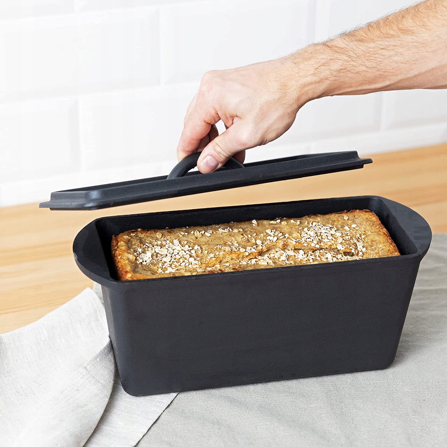 з кришкою - 34 х 13,5 х 17 см, прямокутна, з ручками, випічки хліба та приготування
