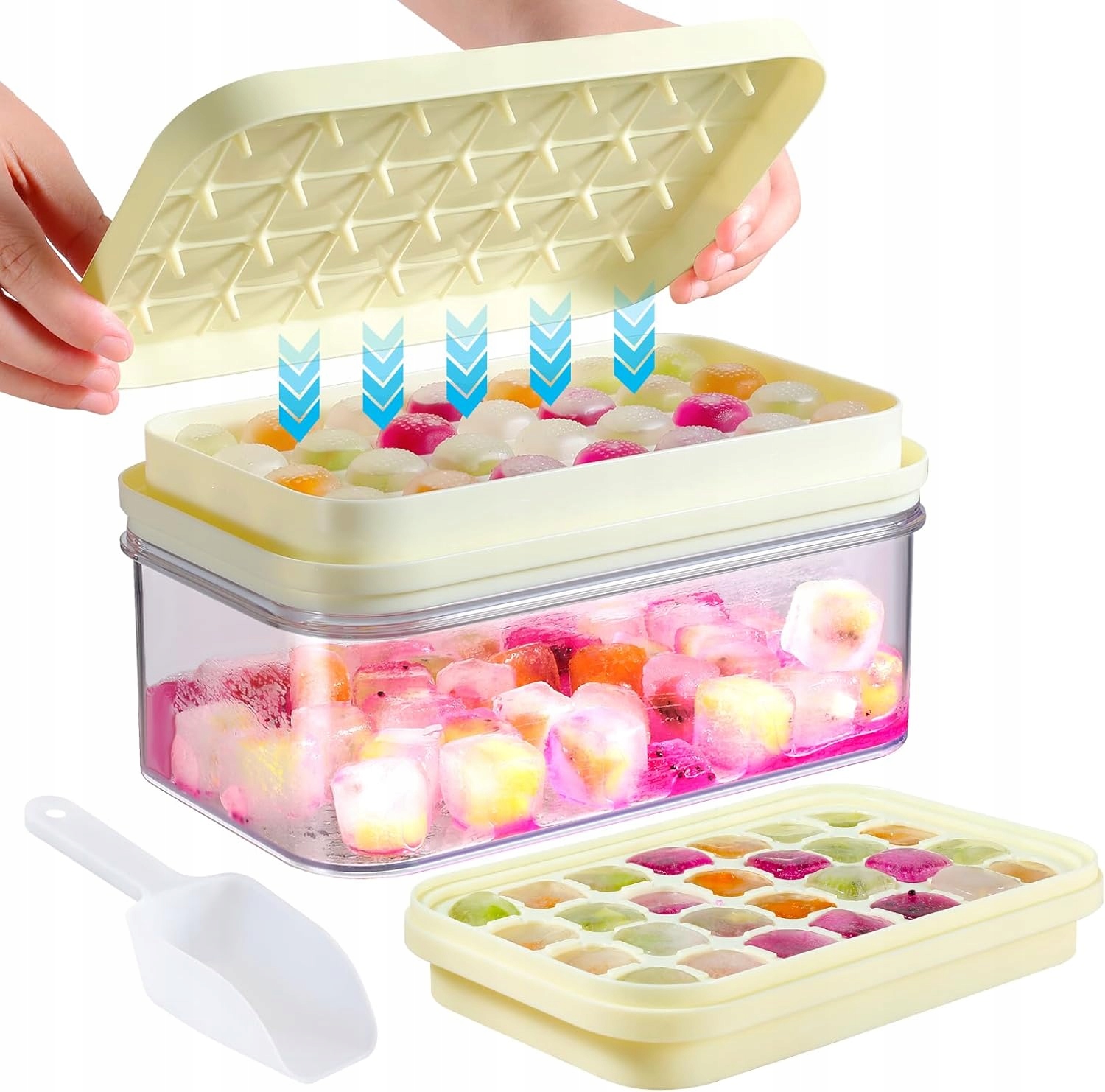 Просто натисніть на дно, щоб зняти лід, не торкаючись його, дуже зручно і чистим.