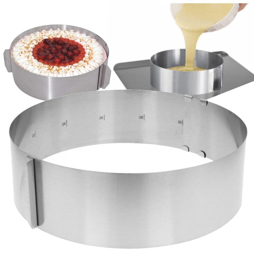 Якісна, регульована кругла форма для випікання тортів, тортів і бісквітів - дуже допоможе при приготуванні випічки. Внутрішня частина обода має дуже корисний надрукований діапазон регулювання від 16 до 30 см з інтервалом 2 сантиметри.