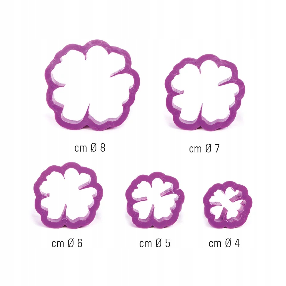 Діаметри: 8 - 7 - 6 - 5 - 4 см