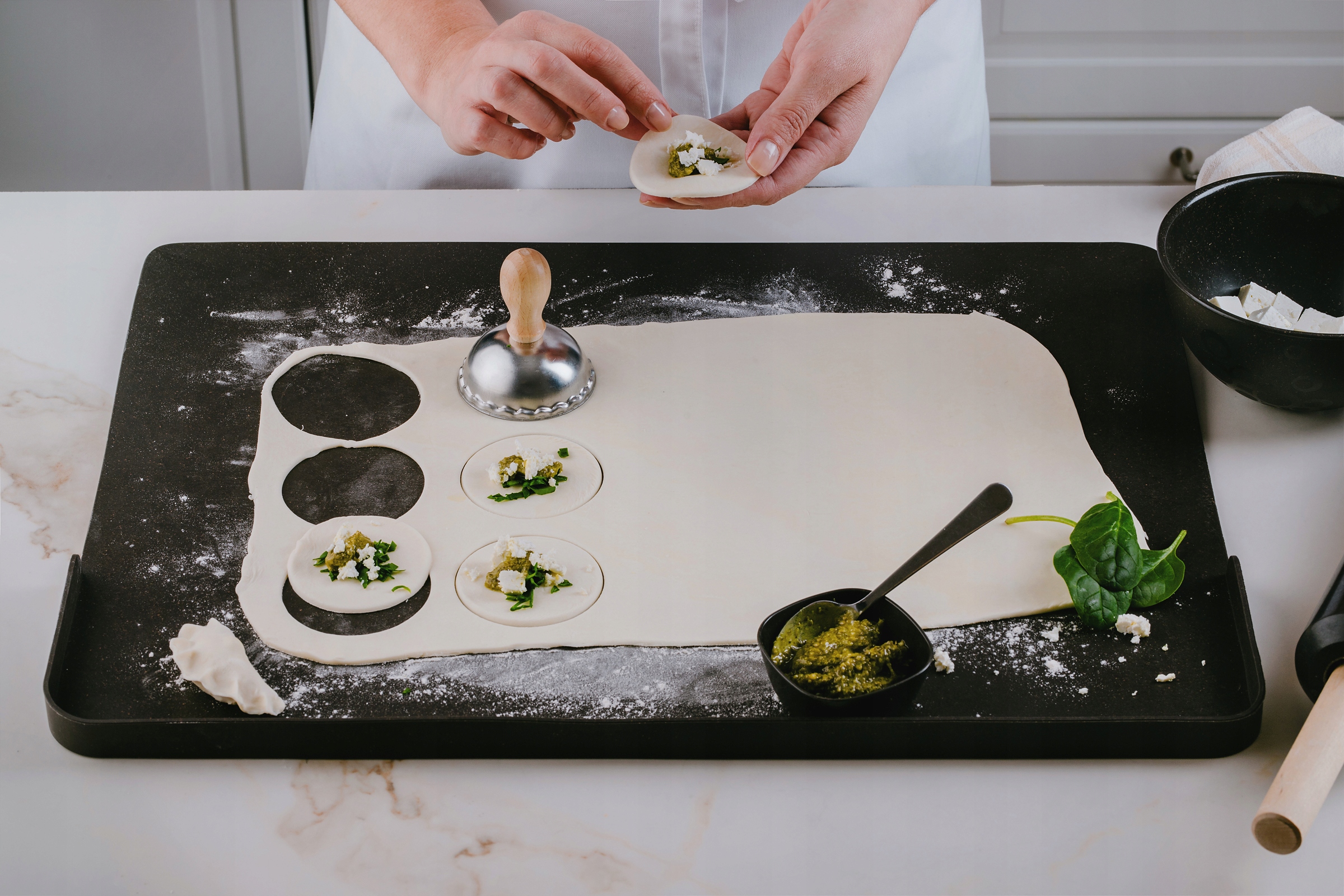 Форма для варениківвиготовлена з високоякісного, стійкого до корозії металу та дерева. Форма для вареників полегшує приготування смачних і домашніх виробів. Вона абсолютно безпечна для здоров'я - дозволена для контакту з харчовими продуктами. Форма для вареників проста у використанні - просто виріжте кружечки з розкачаного тіста. Завдяки цьому ми можемо легко та швидко створити велику кількість вареників естетичної та однорідної форми. Форми виготовлені в Польщі.