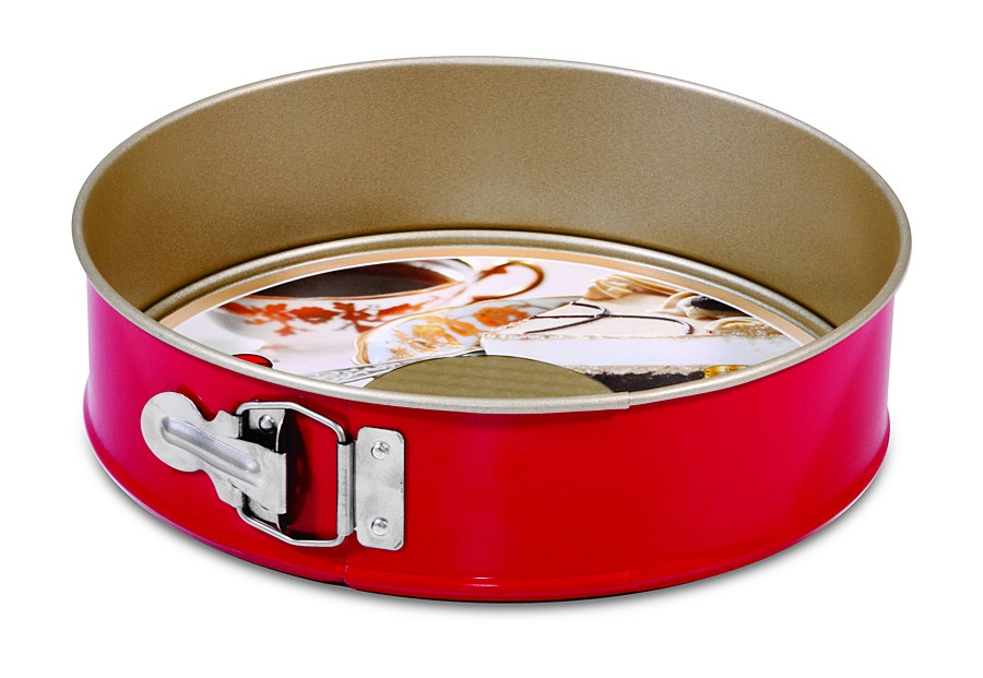 Олово -торт має застібку, завдяки якому ви можете легко зняти тісто з форми.